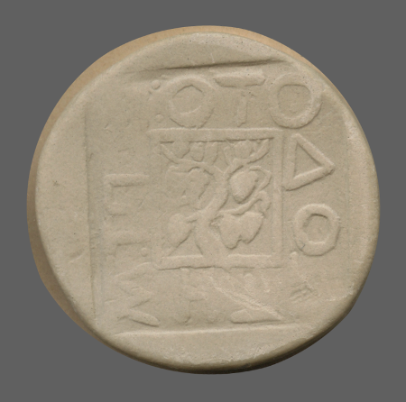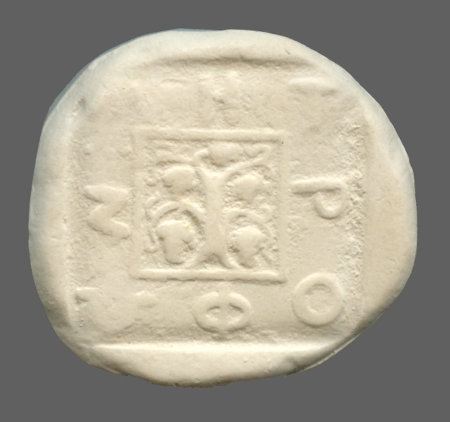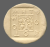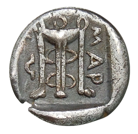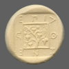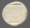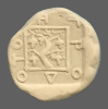 Tripod within incuse square.