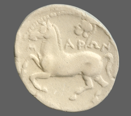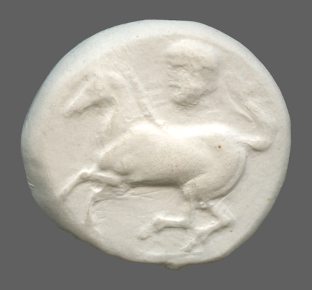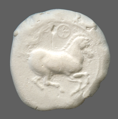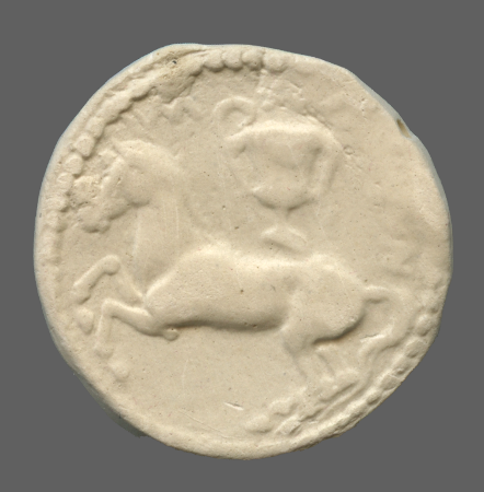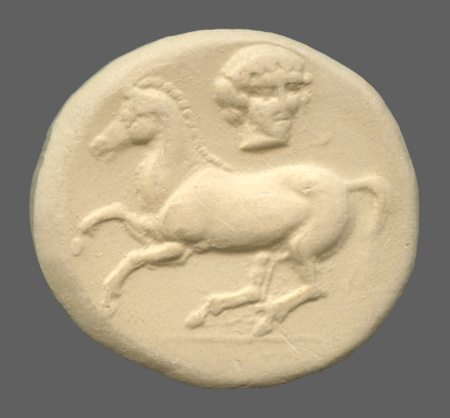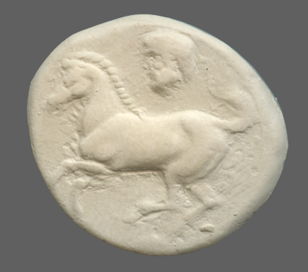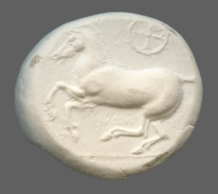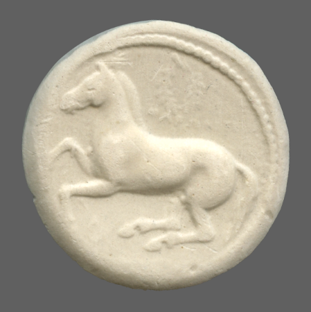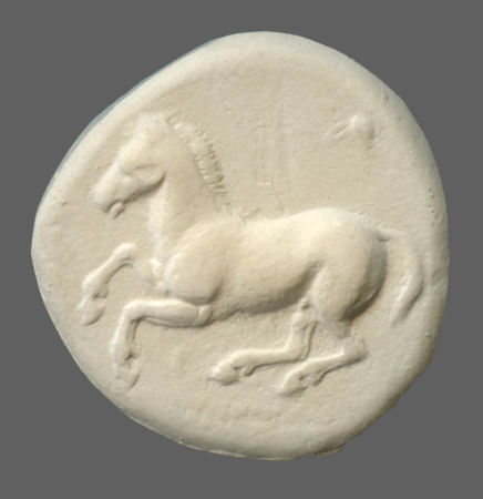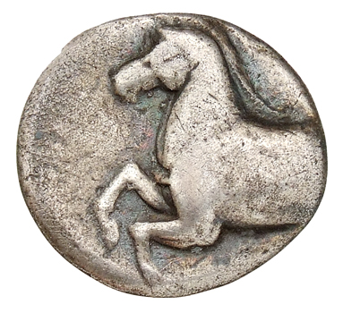 Forepart of prancing horse, right.