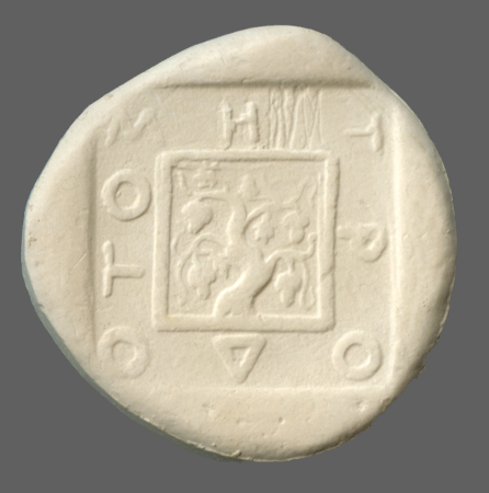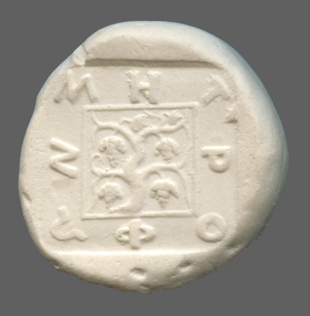 Helmet, right; in incuse square.