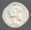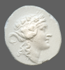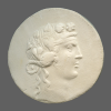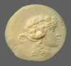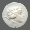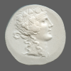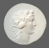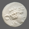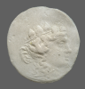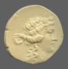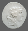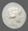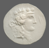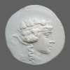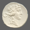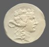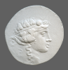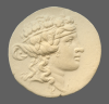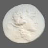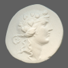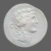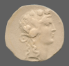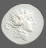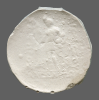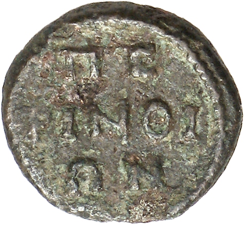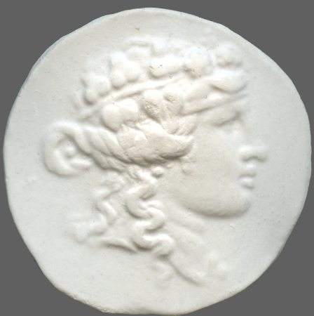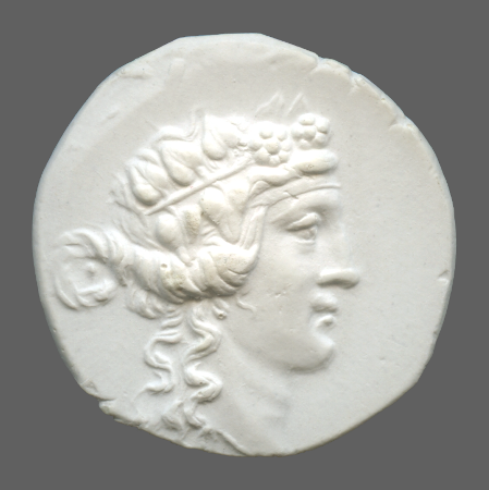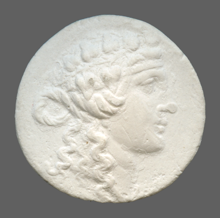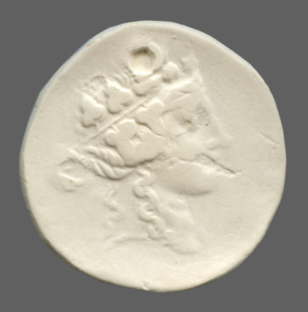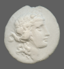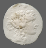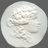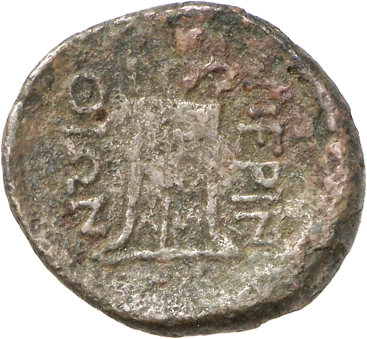 Jugate heads of Serapis, wearing lotus, and of Isis, wearing her headdress, right.