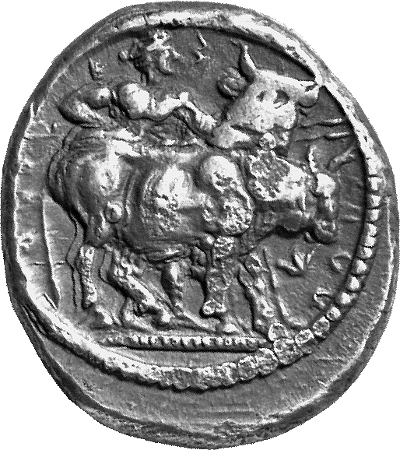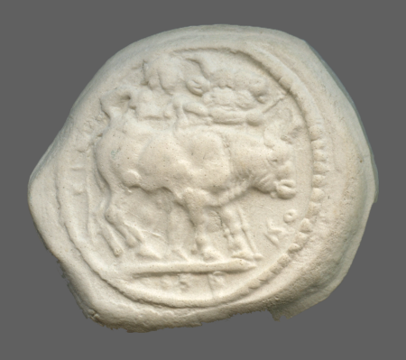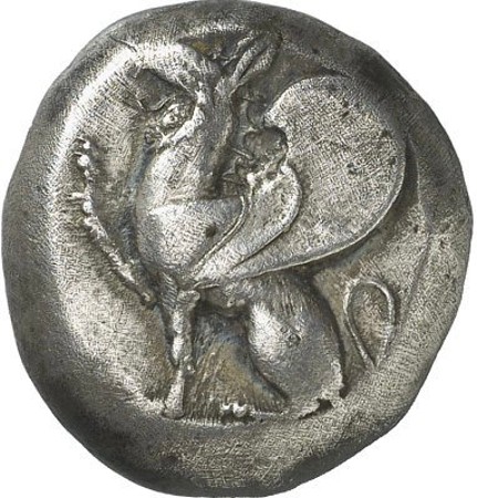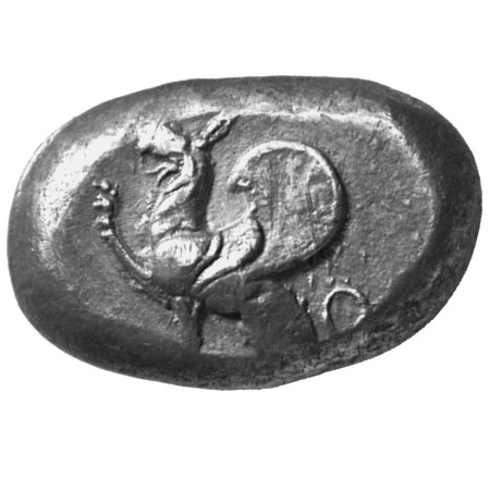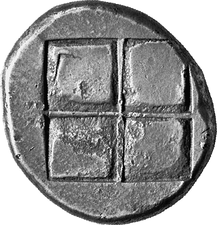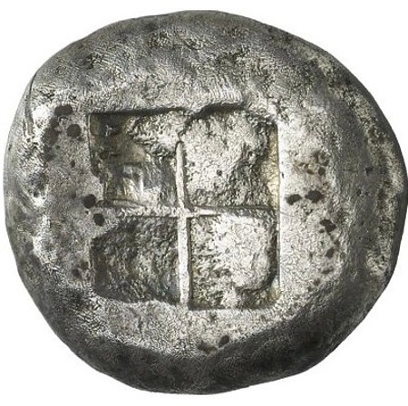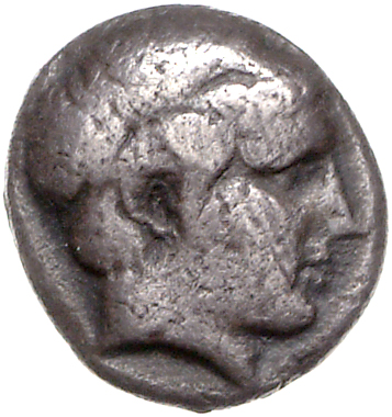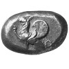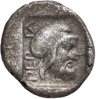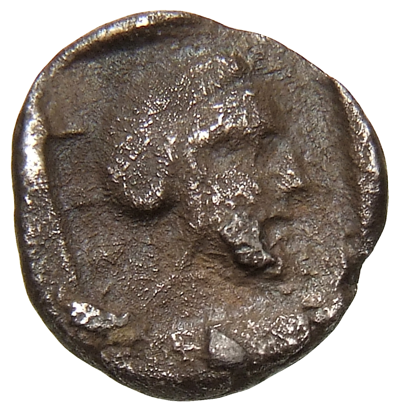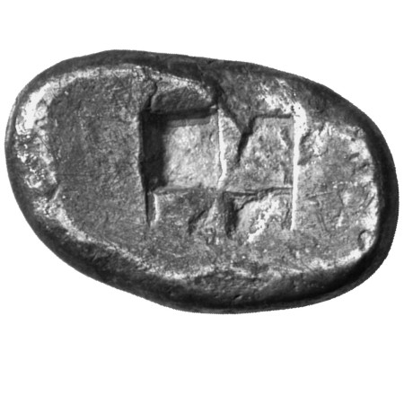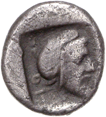 Head of satrap (Gongylos?) right, wearing kyrbasia, within incuse square.