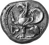 Corinthian helmet, right; in incuse square.