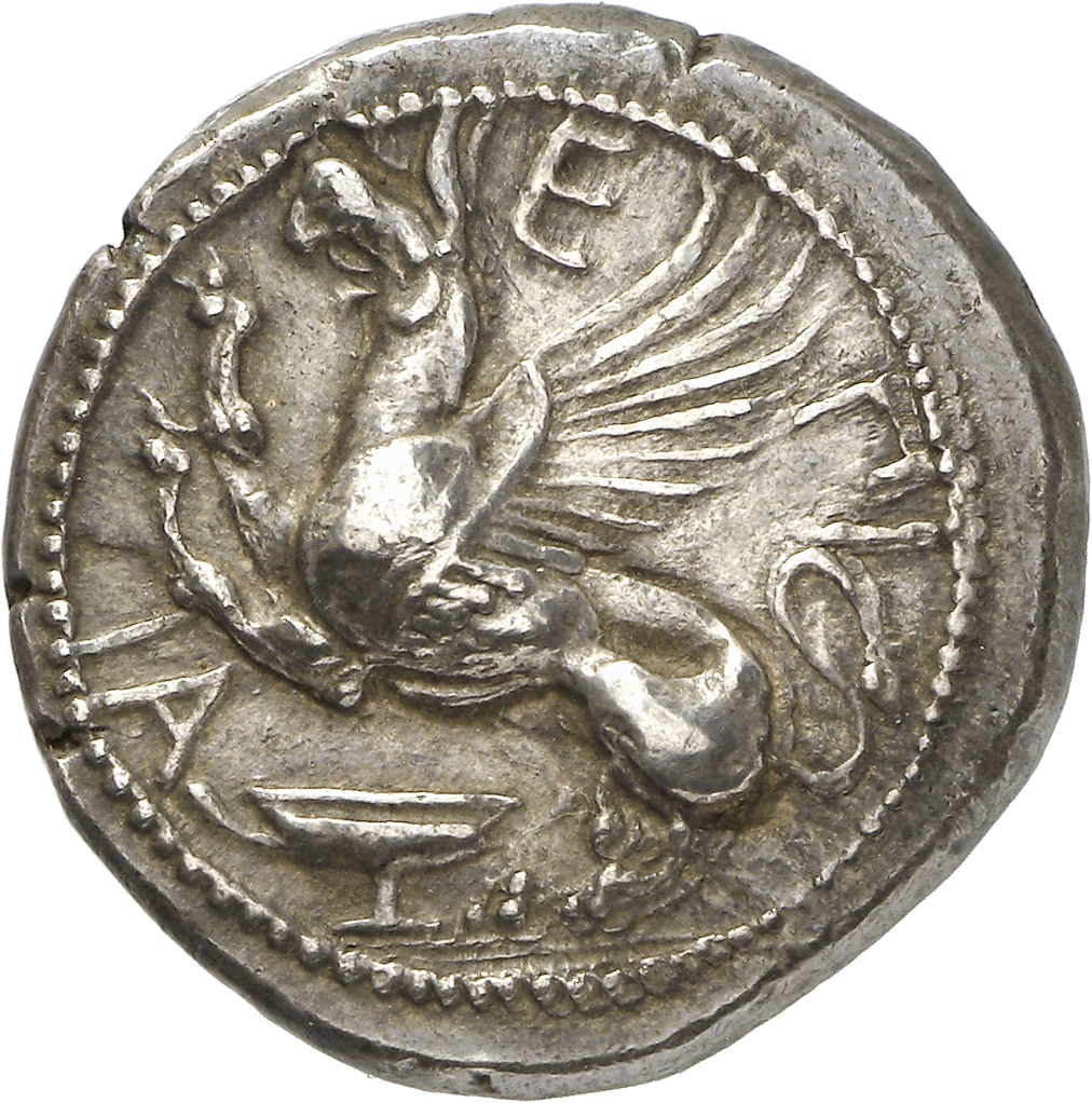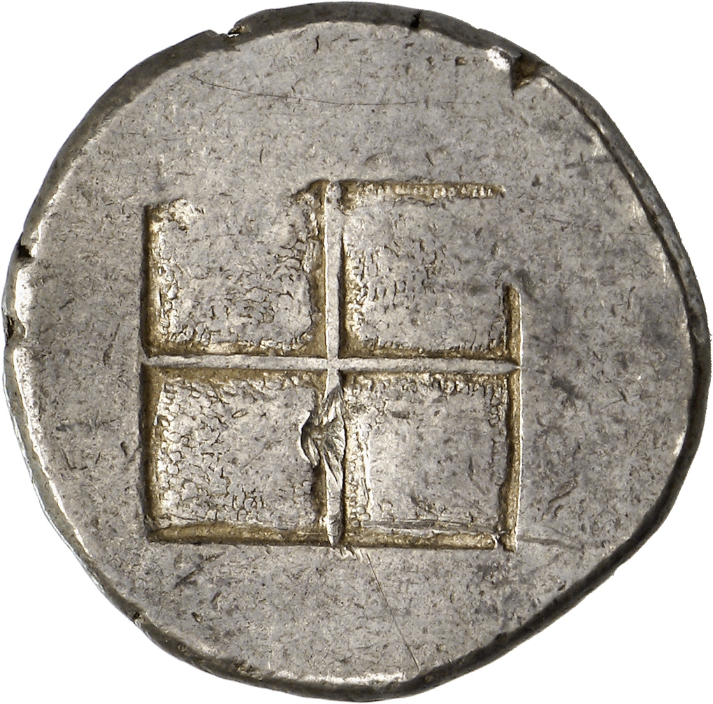 Charioteer (ruler?) in biga drawn by two oxen, right, holding whip.