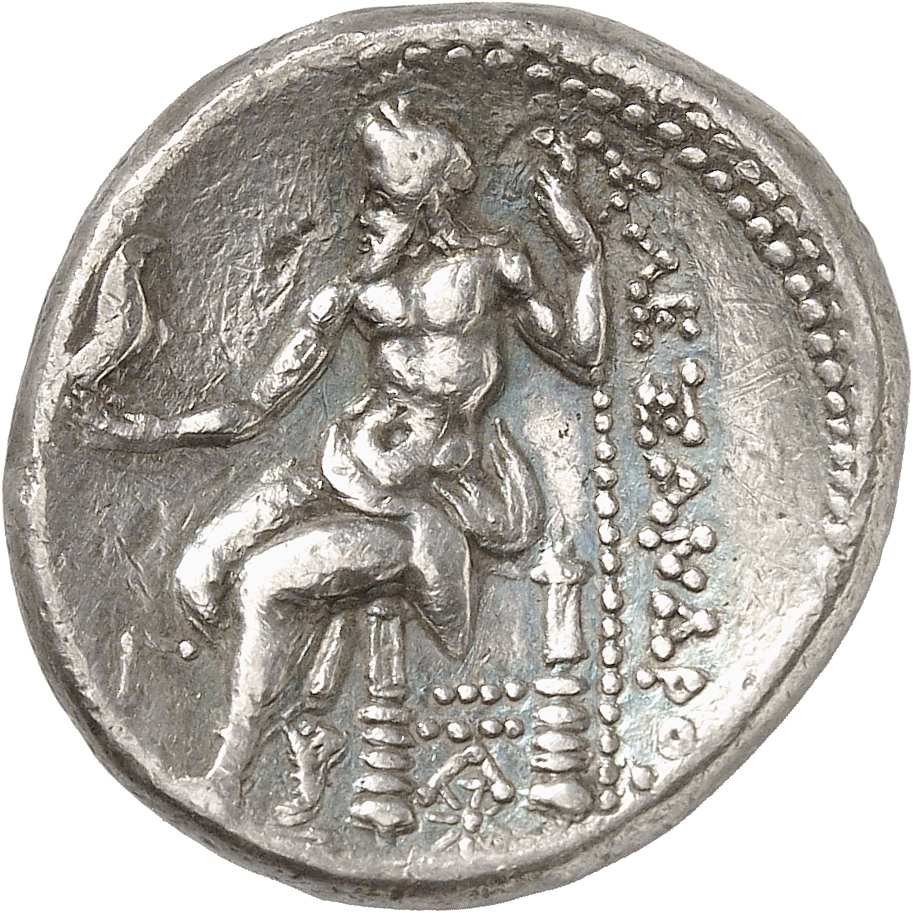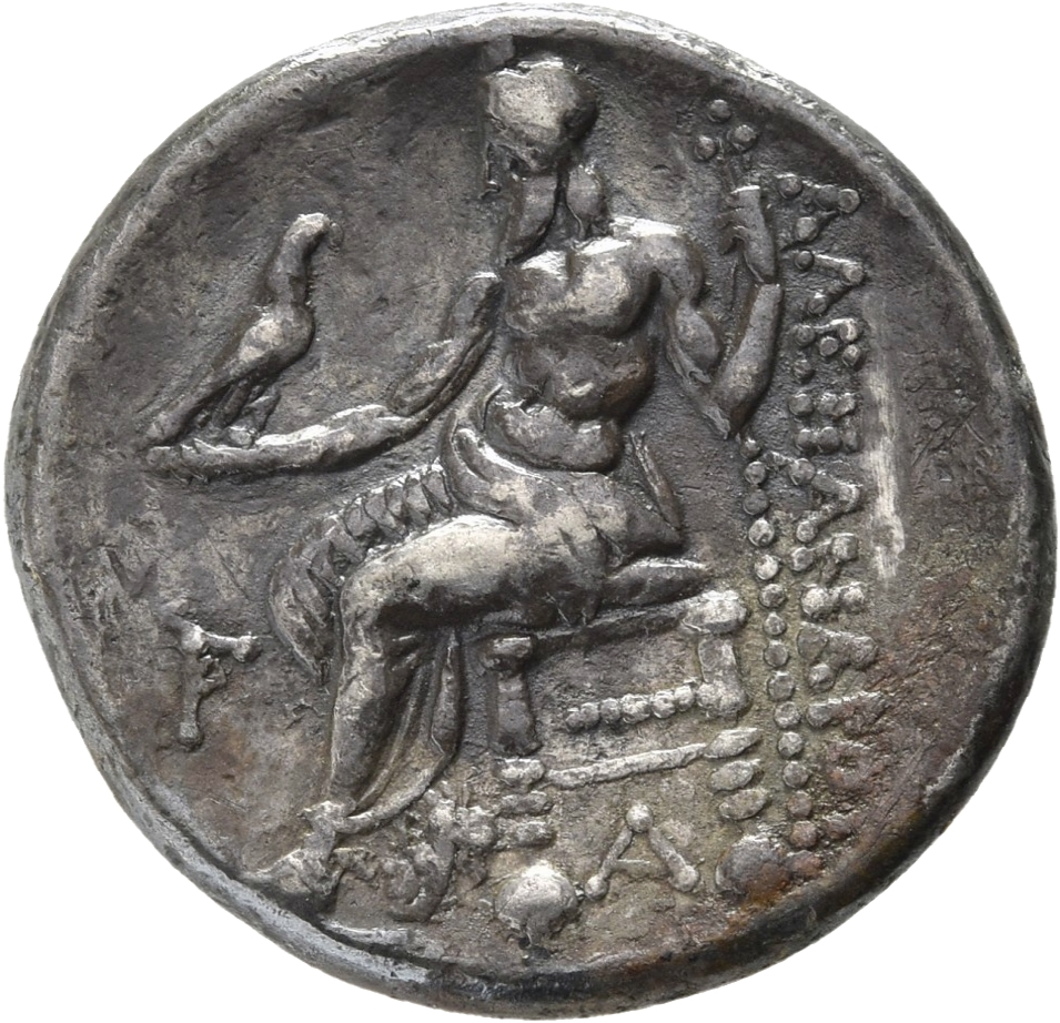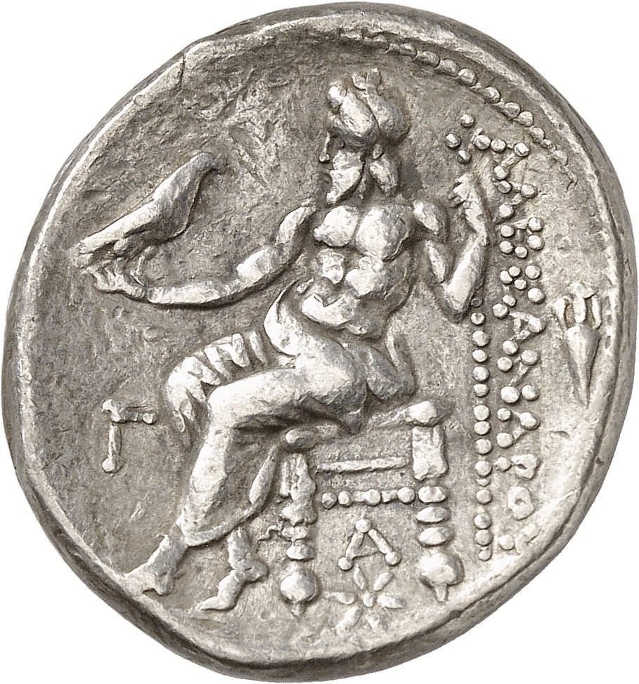 ΑΛΕΞΑΝΔΡΟΥ: Zeus seated on stool-throne left, eagle on outstretched right hand, sceptre in left hand