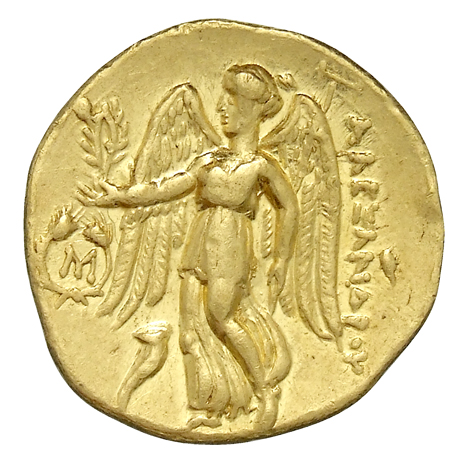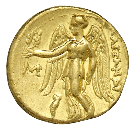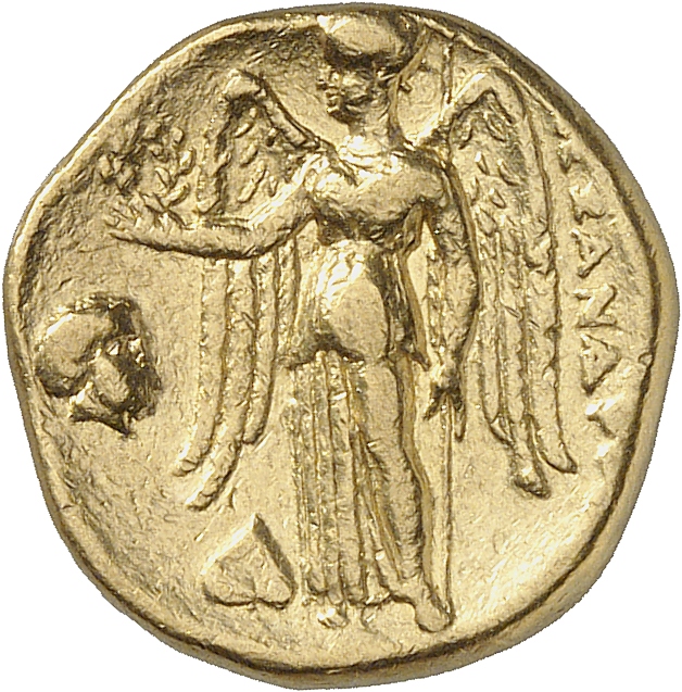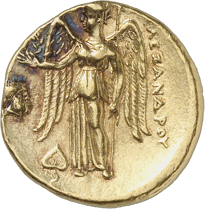 ΑΛΕΞΑΝΔΡΟΥ: Nike standing left holding wreath in right hand, and stylis in her left hand