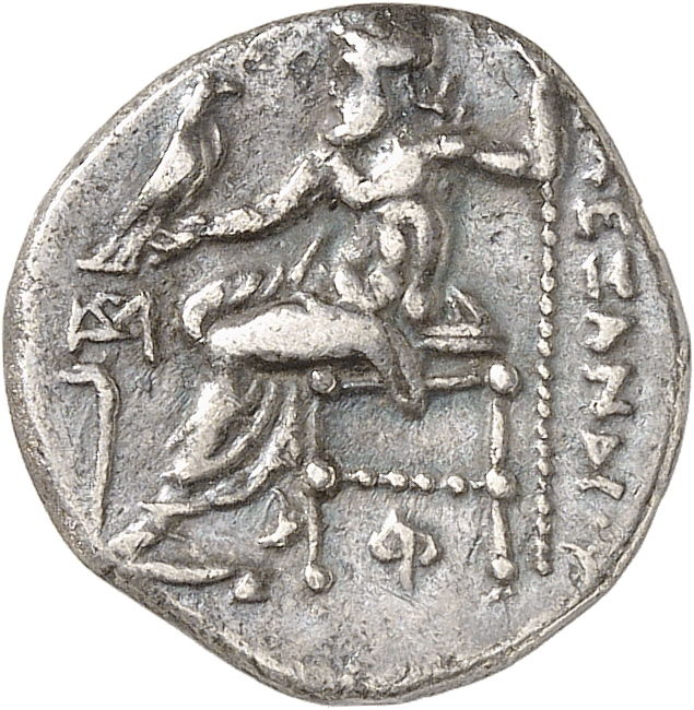 ΑΛΕΞΑΝΔΡΟΥ: Zeus seated on stool-throne left, eagle on outstretched right hand, sceptre in left hand