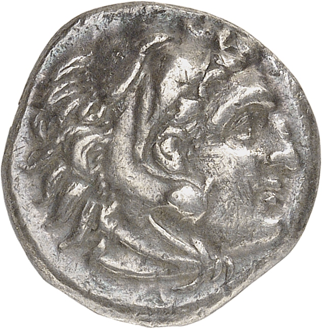 Head of beardless Heracles right wearing lion skin headdress