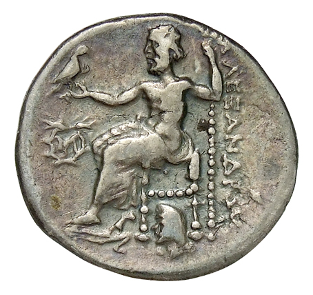 ΑΛΕΞΑΝΔΡΟΥ: Zeus seated on stool-throne left, eagle on outstretched right hand, sceptre in left hand