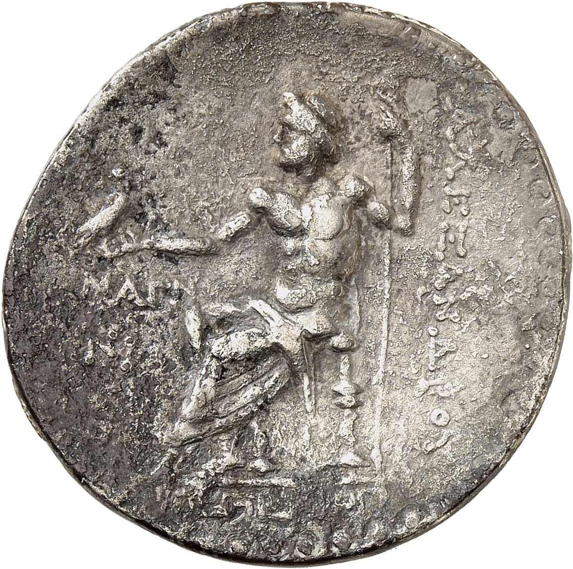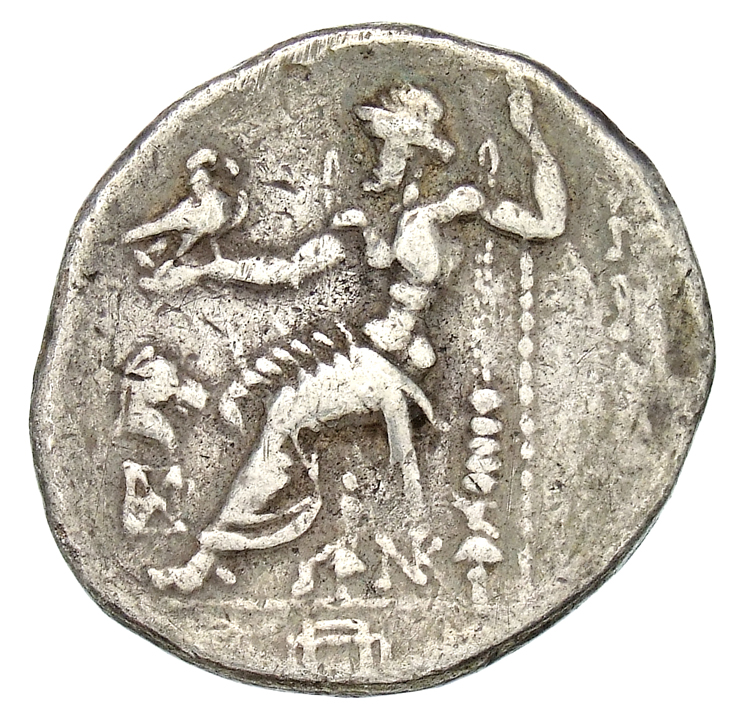 ΑΛΕΞΑΝΔΡΟΥ: Zeus seated on stool-throne left, eagle on outstretched right hand, sceptre in left hand