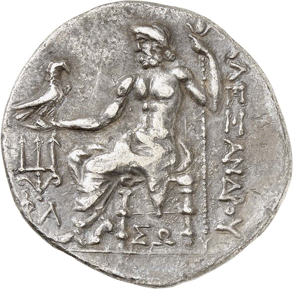 ΒΑΣΙΛΕΩΣ ΑΛΕΞΑΝΔΡΟΥ: Zeus seated on stool-throne left, eagle on outstretched right hand, sceptre in left hand