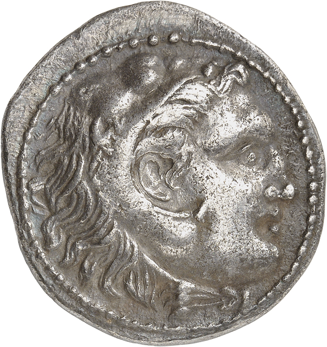 Head of beardless Heracles right wearing lion skin headdress