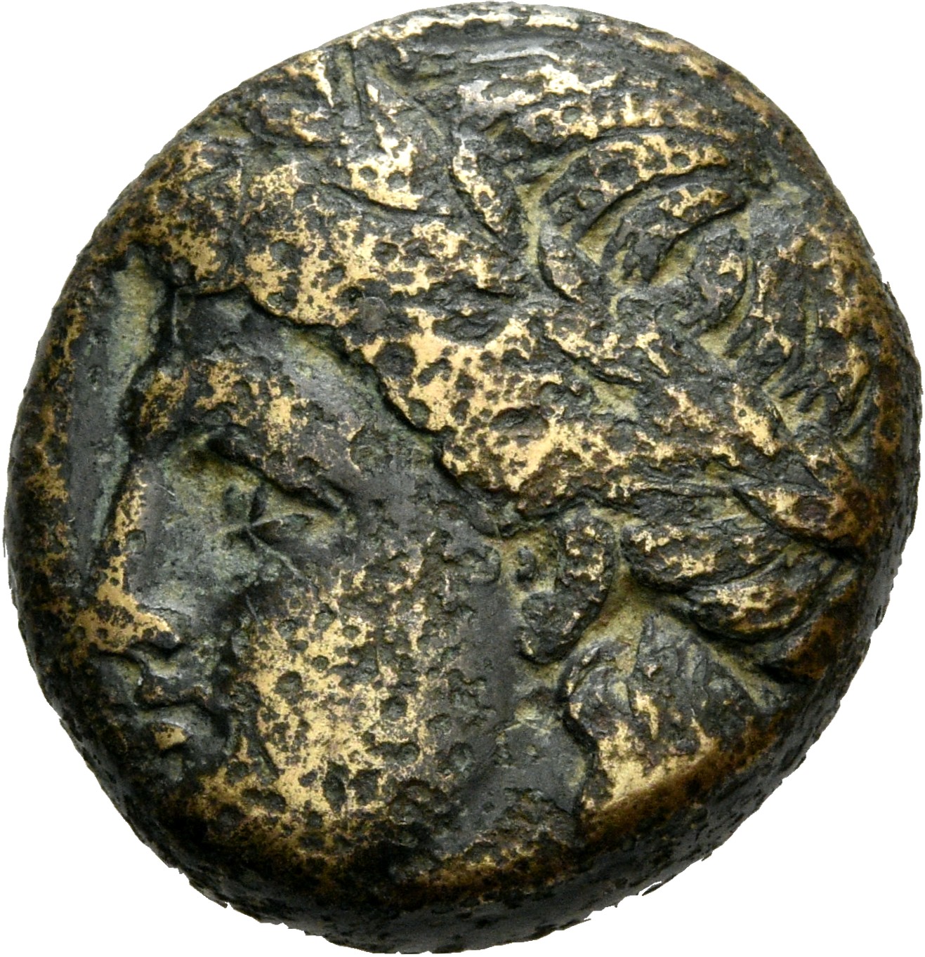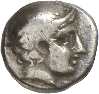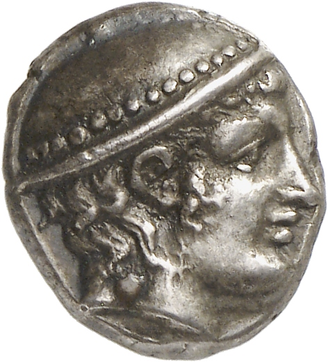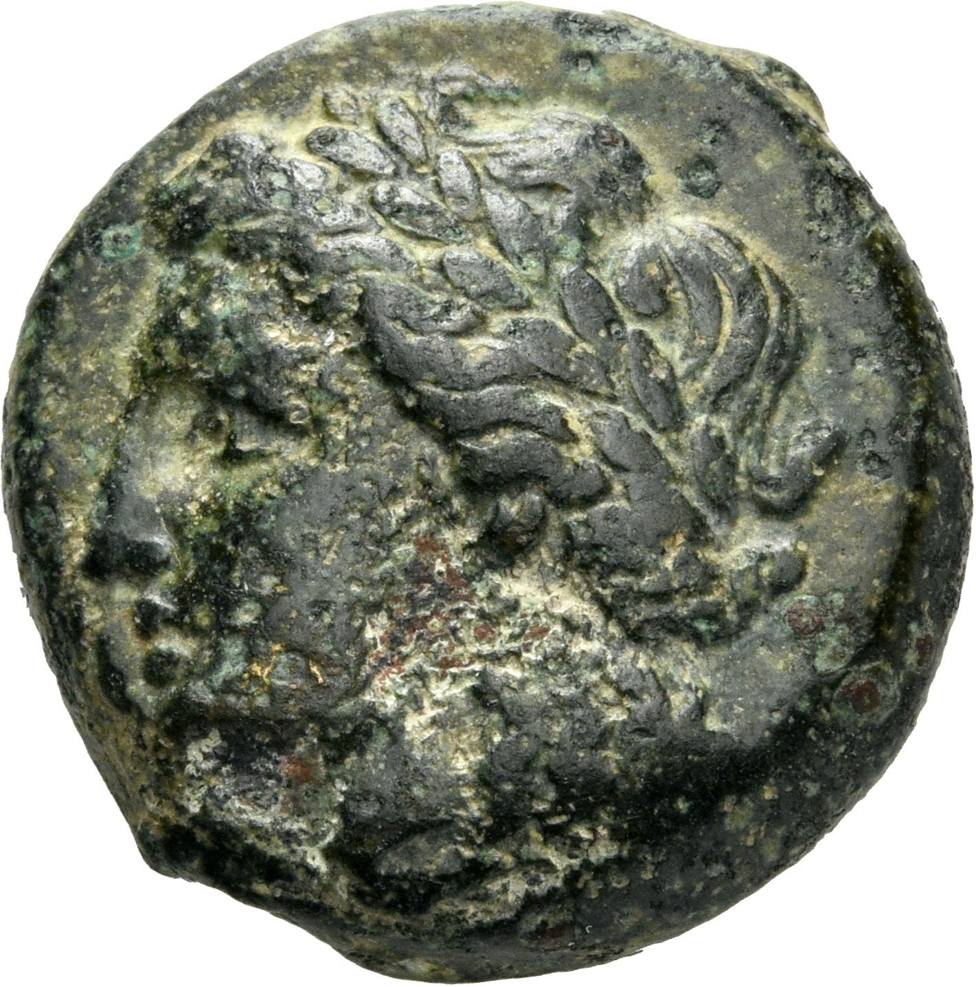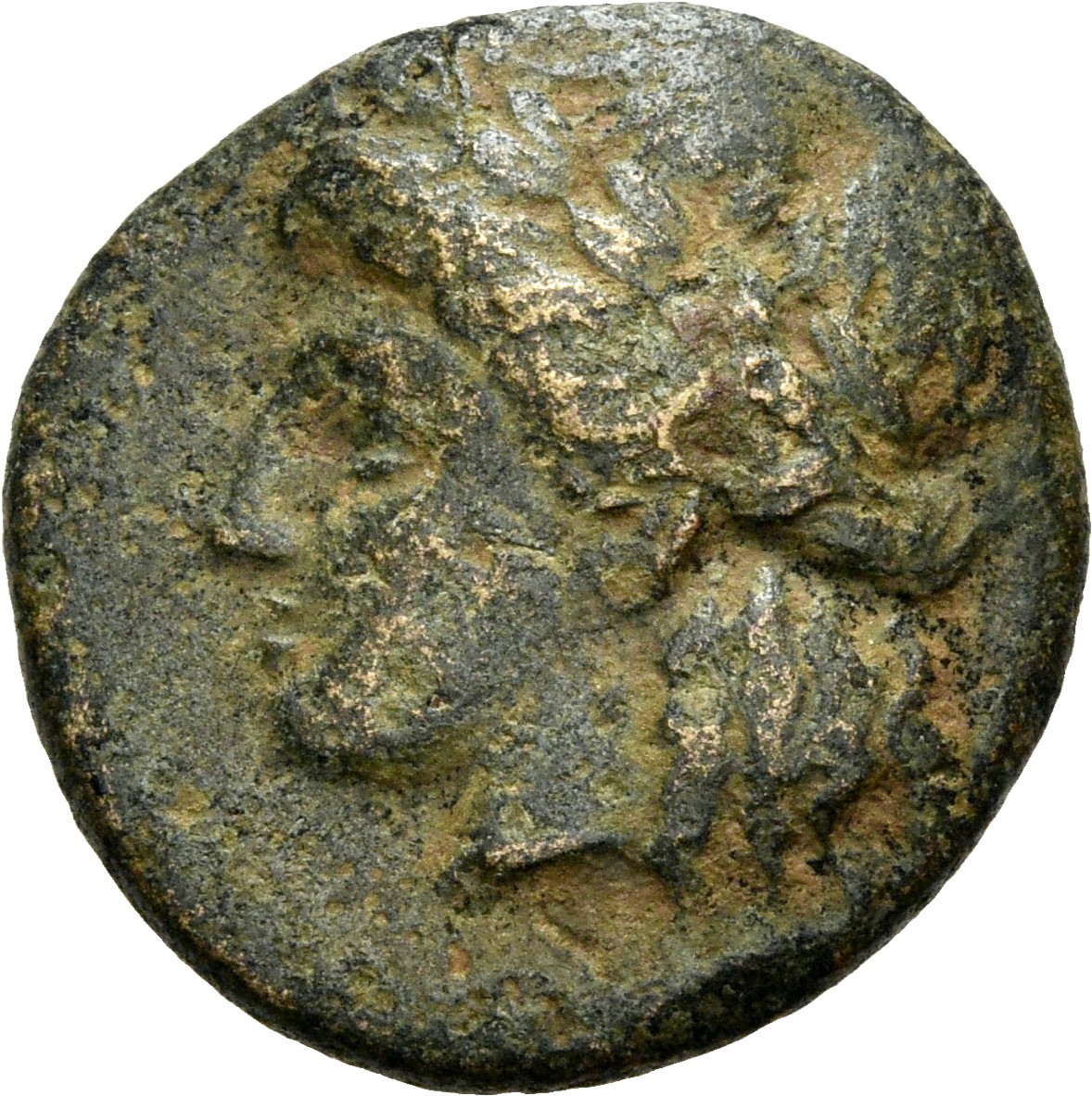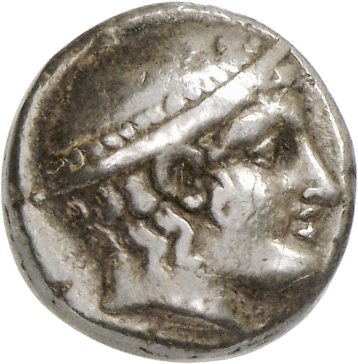 Laureate head of Apollo, right.