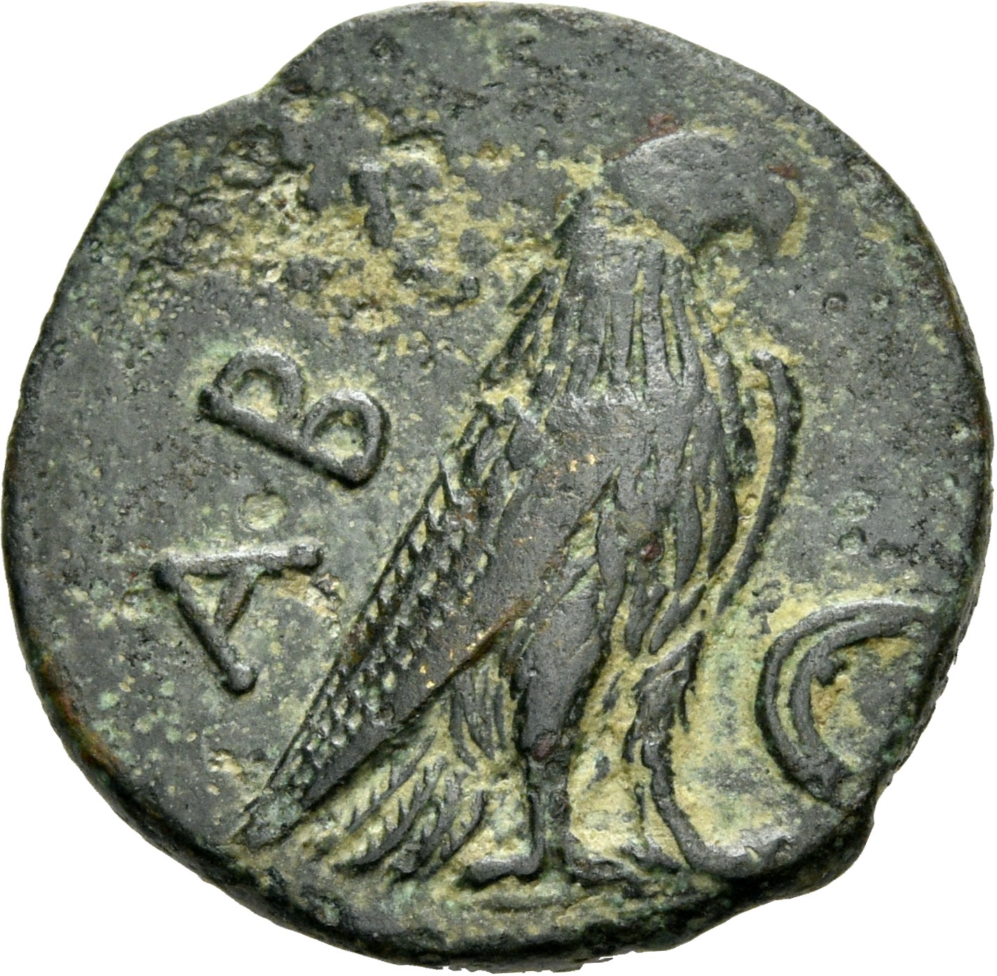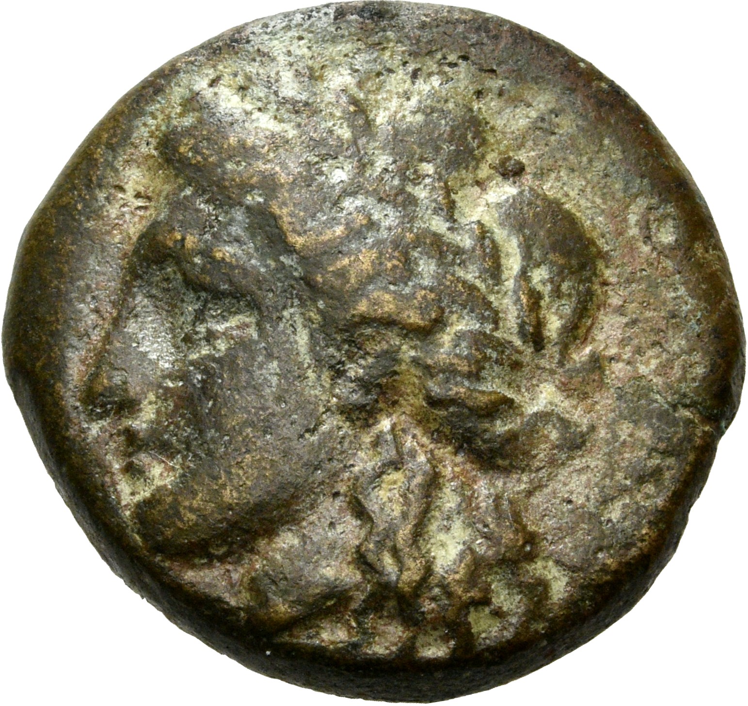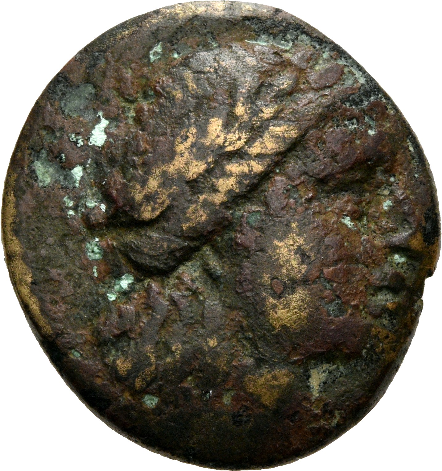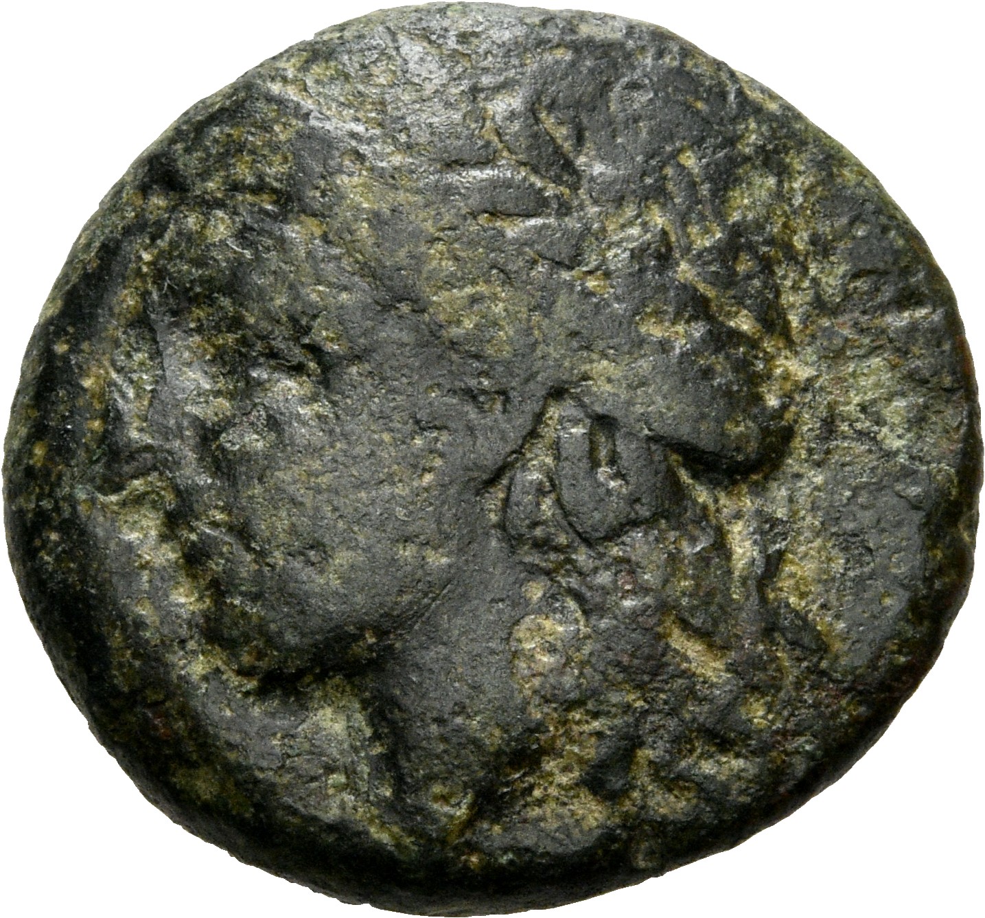 Laureate head of Apollo, right.