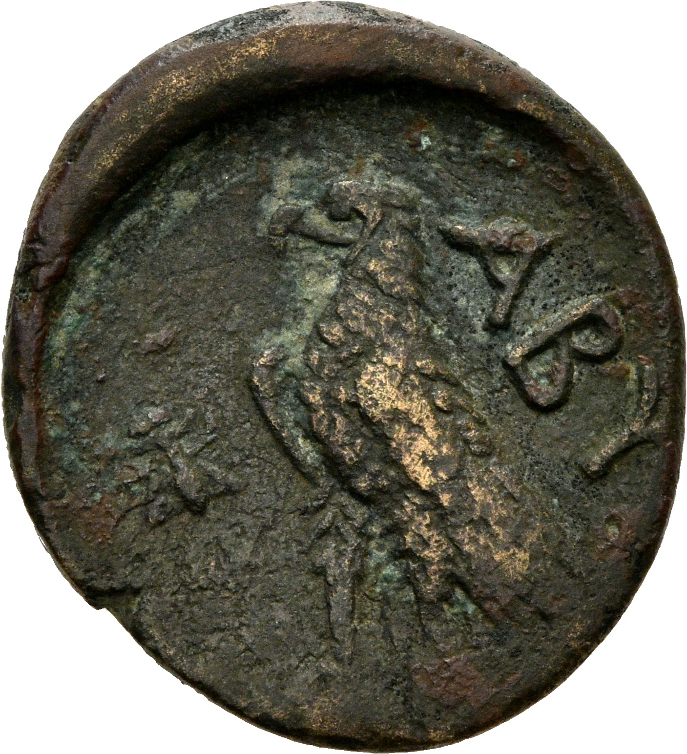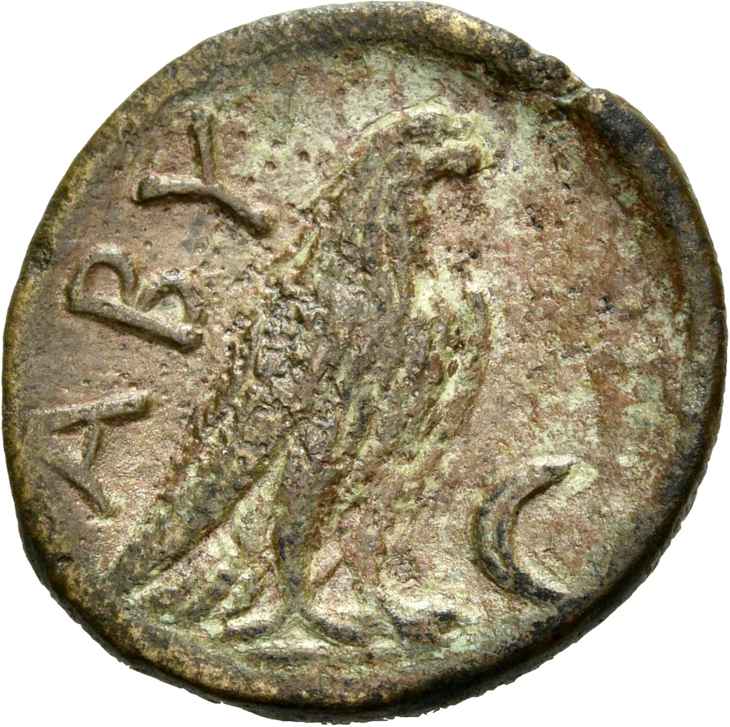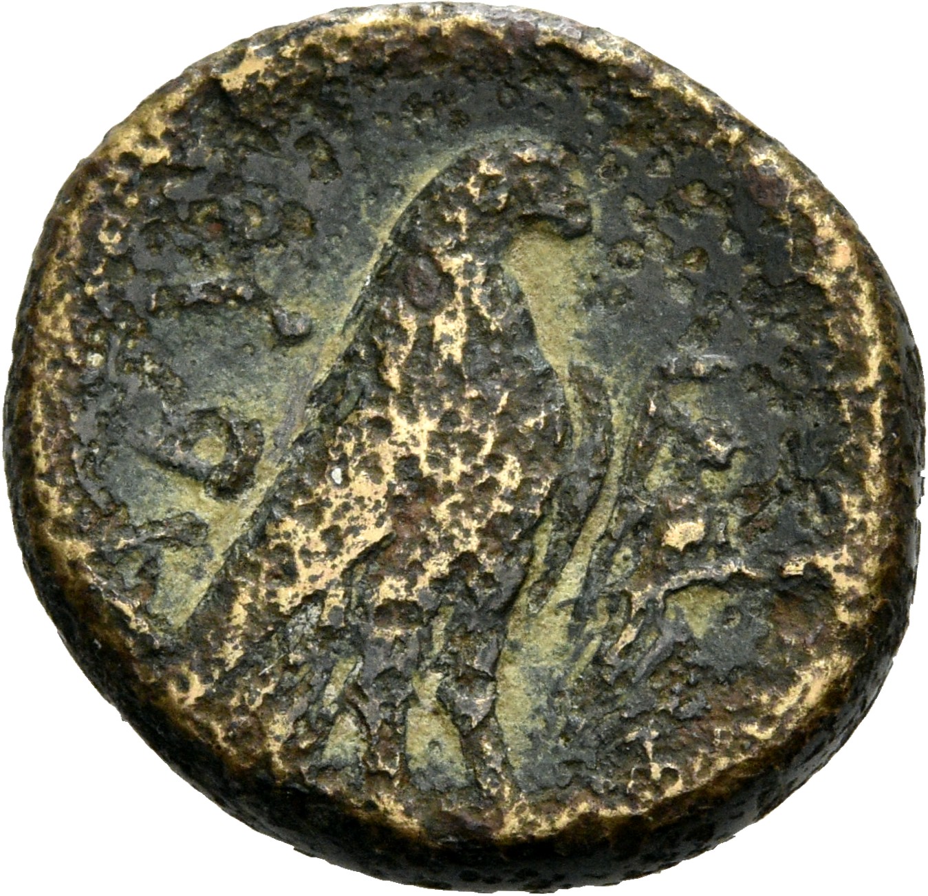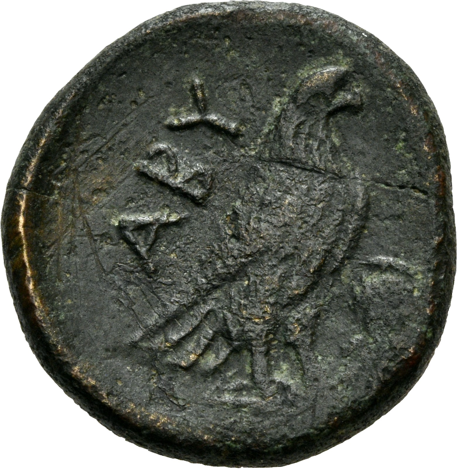 Laureate head of Apollo, right.