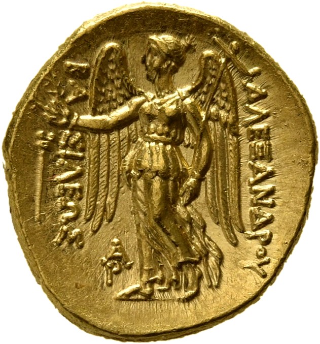 ΒΑΣΙΛΕΩΣ ΦΙΛΙΠΠΟΥ: Nike standing left holding wreath in right hand, and stylis in her left hand