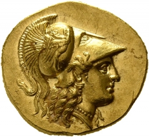 ΑΛΕΞΑΝΔΡΟΥ: Macedonian helmet with crest and cheek pieces