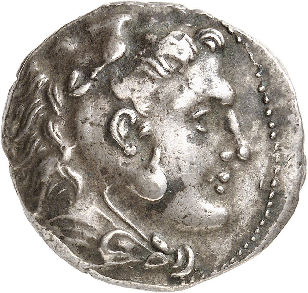 Head of beardless Heracles right wearing lion skin headdress