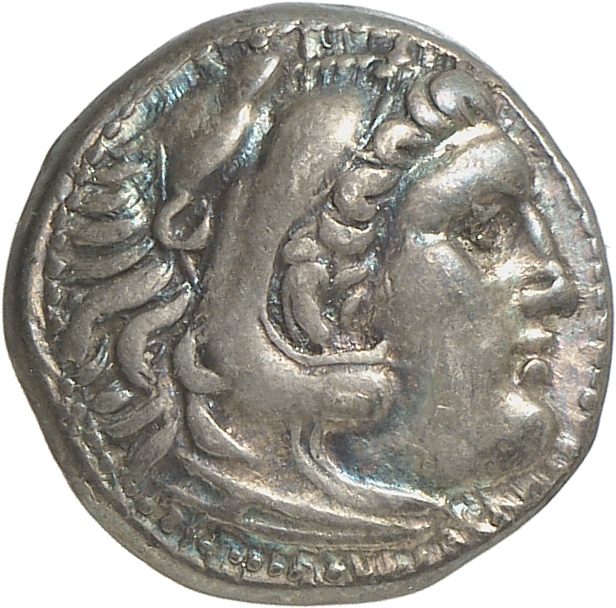 Tête d'Héraclès imberbe à dr. coiffé d'une dépouille de lion
