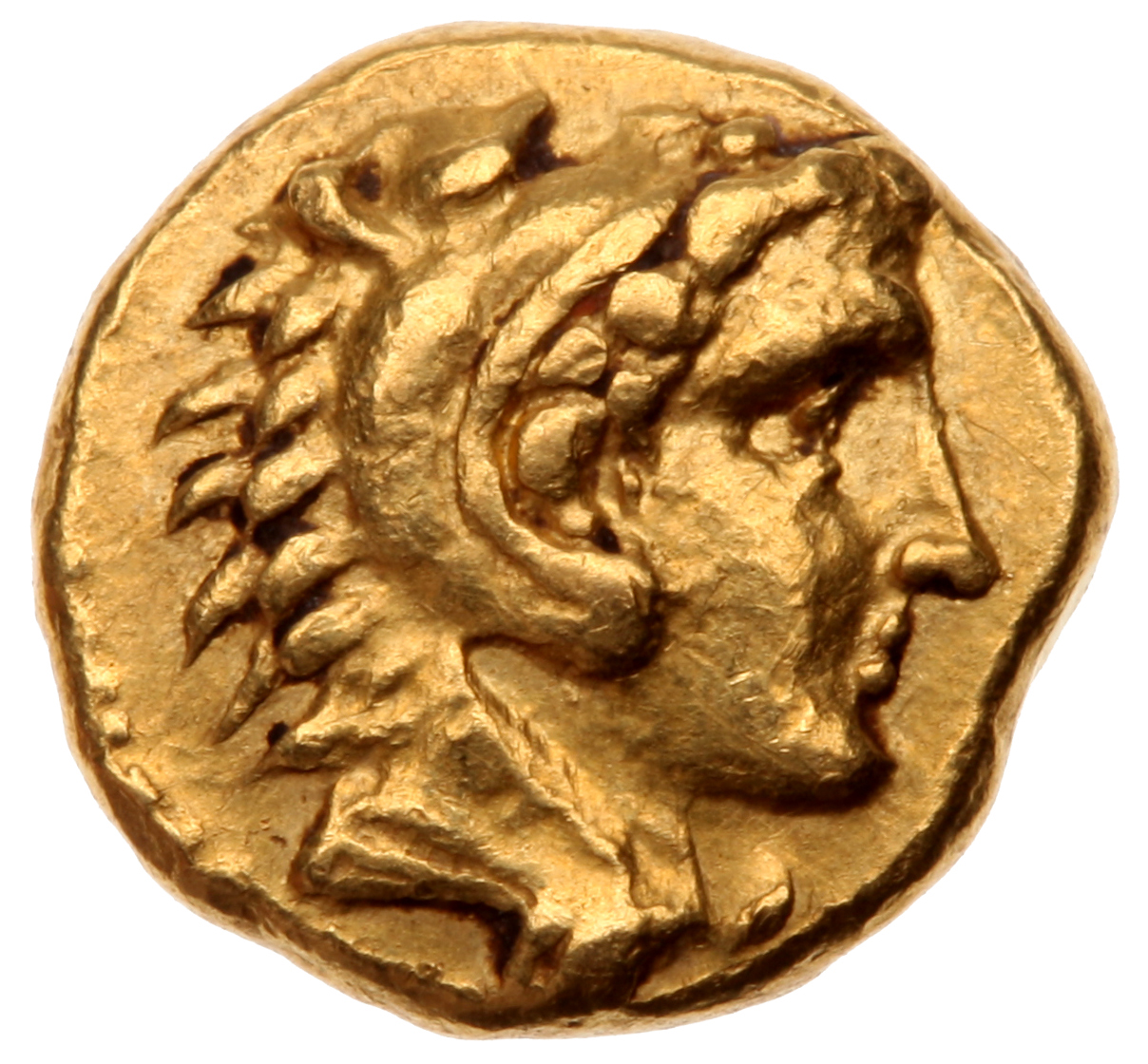 Head of beardless Heracles right wearing lion skin headdress
