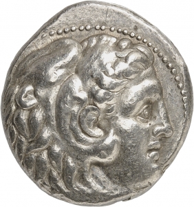 Tête d'Héraclès imberbe à dr. coiffé d'une dépouille de lion