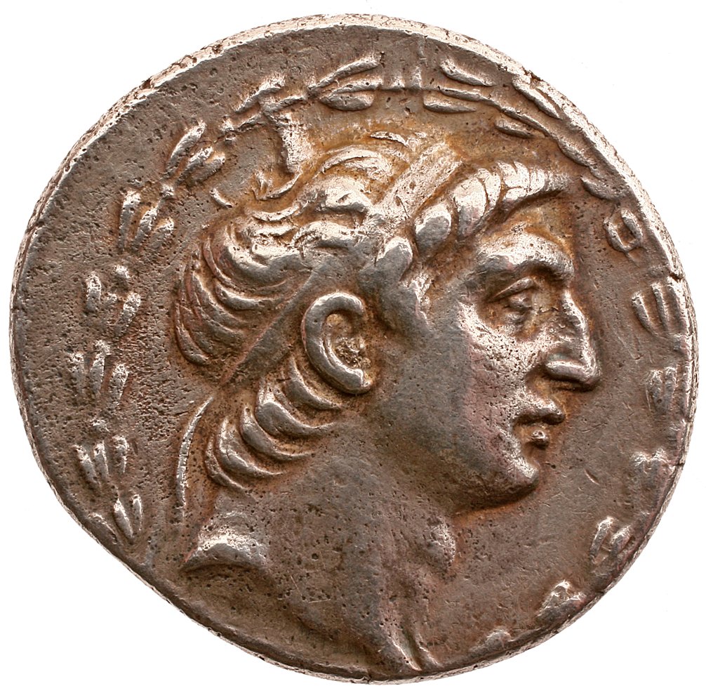 BAΣΙΛΕΩΣ ANTIOXΟΥ ΘEOY EΠIΦANOYΣ: Eagle standing right on thunderbolt
