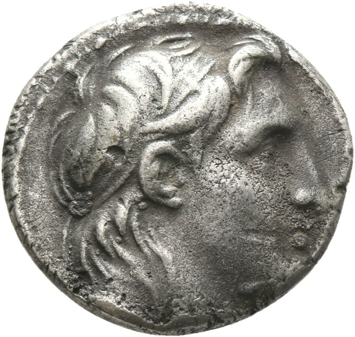 Diademed head of Alexander I right, usually with long sideburn or scanty beard along jawline