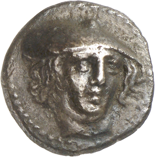 Head of Hermes facing, slightly right, wearing petasus.