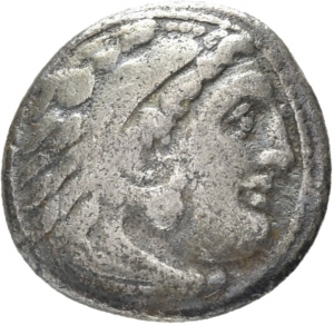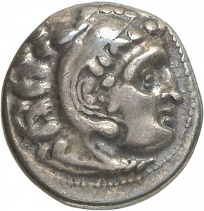 Tête d'Héraclès imberbe à dr. coiffé d'une dépouille de lion