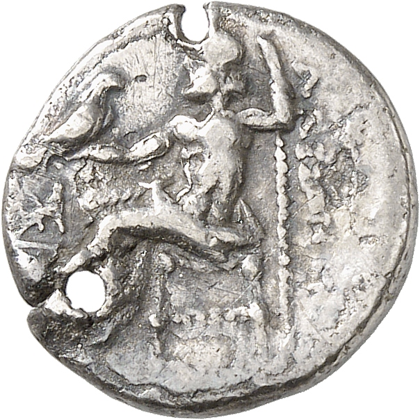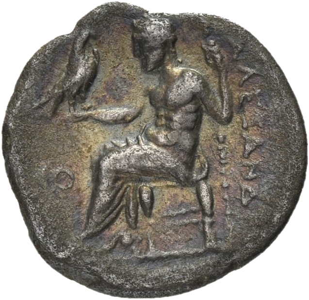 ΑΛΕΞΑΝΔΡΟΥ: Zeus assis à g. sur un trône, un aigle dans la main dr. tendue et un sceptre dans la main g.