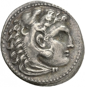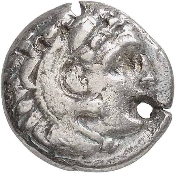 Tête d'Héraclès imberbe à dr. coiffé d'une dépouille de lion