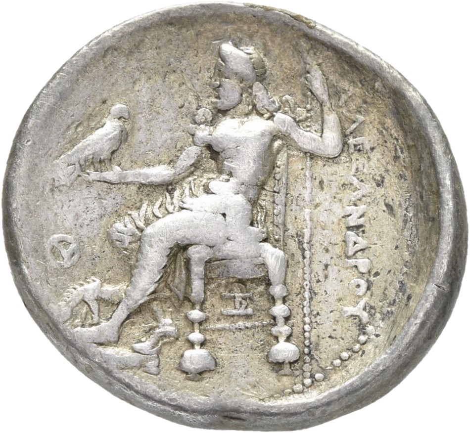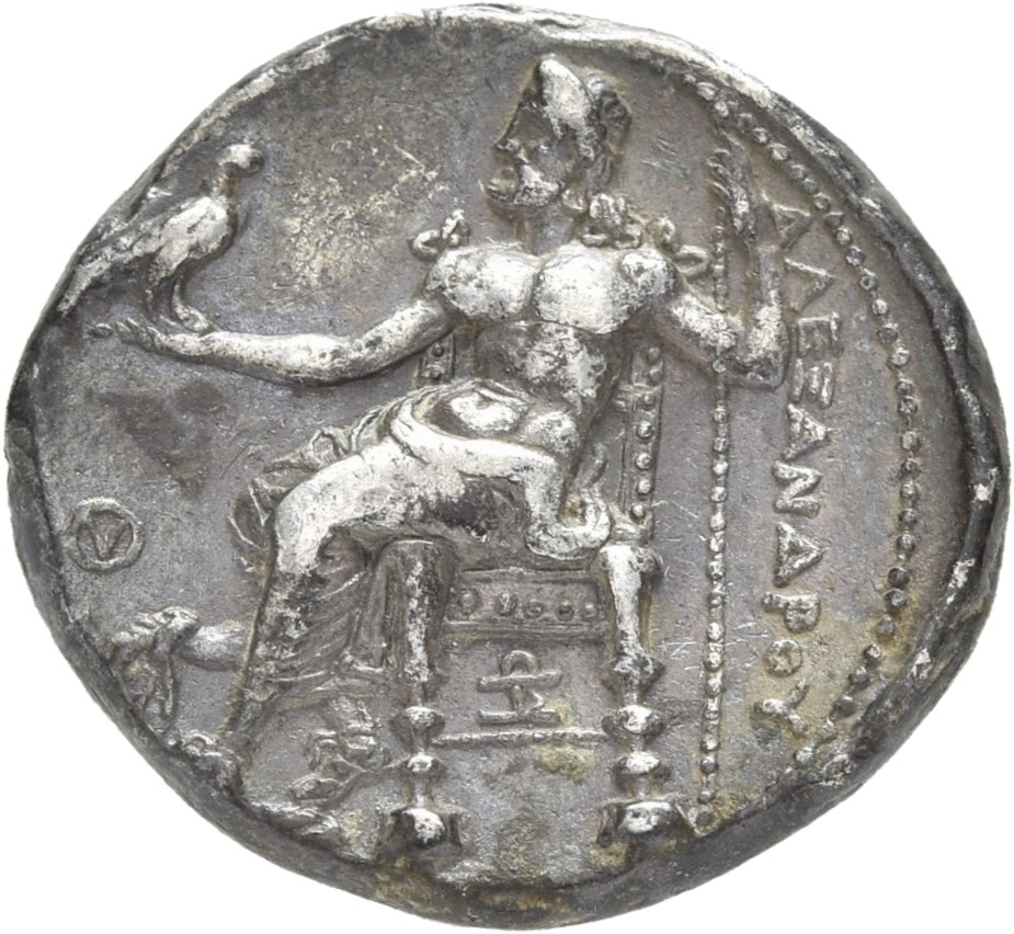 ΑΛΕΞΑΝΔΡΟΥ: Zeus assis à g. sur un trône, un aigle dans la main dr. tendue et un sceptre dans la main g.