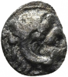 Tête d'Héraclès imberbe à dr. coiffé d'une dépouille de lion
