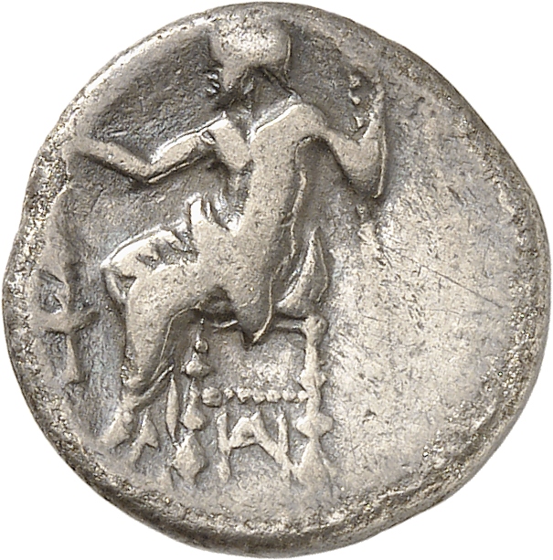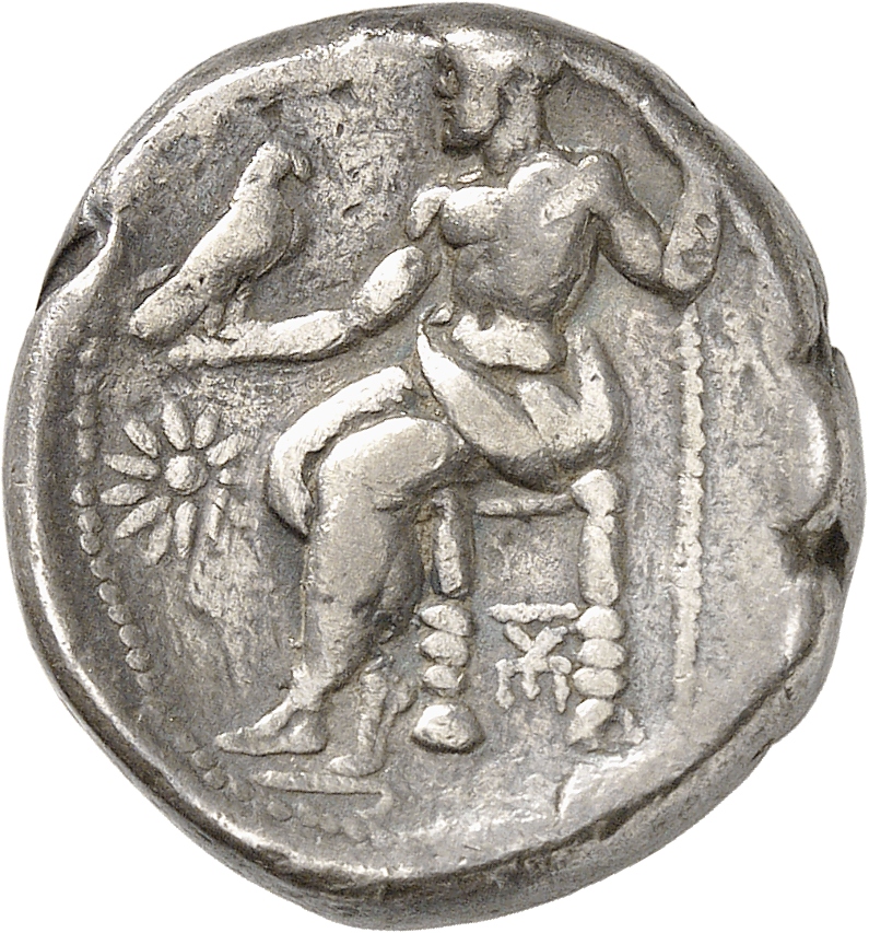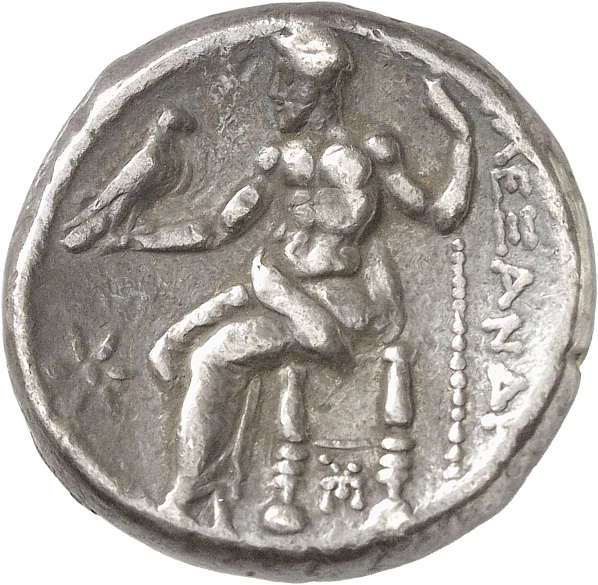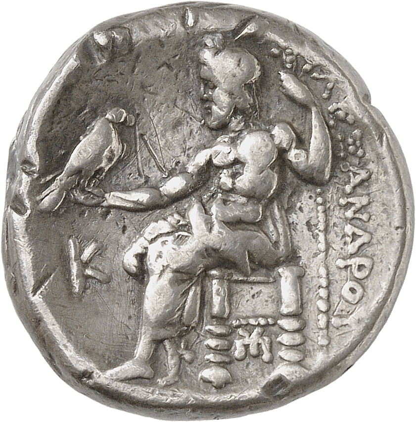 ΑΛΕΞΑΝΔΡΟΥ: Zeus seated on stool-throne left, eagle on outstretched right hand, sceptre in left hand
