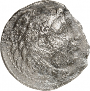 Head of beardless Heracles right wearing lion skin headdress