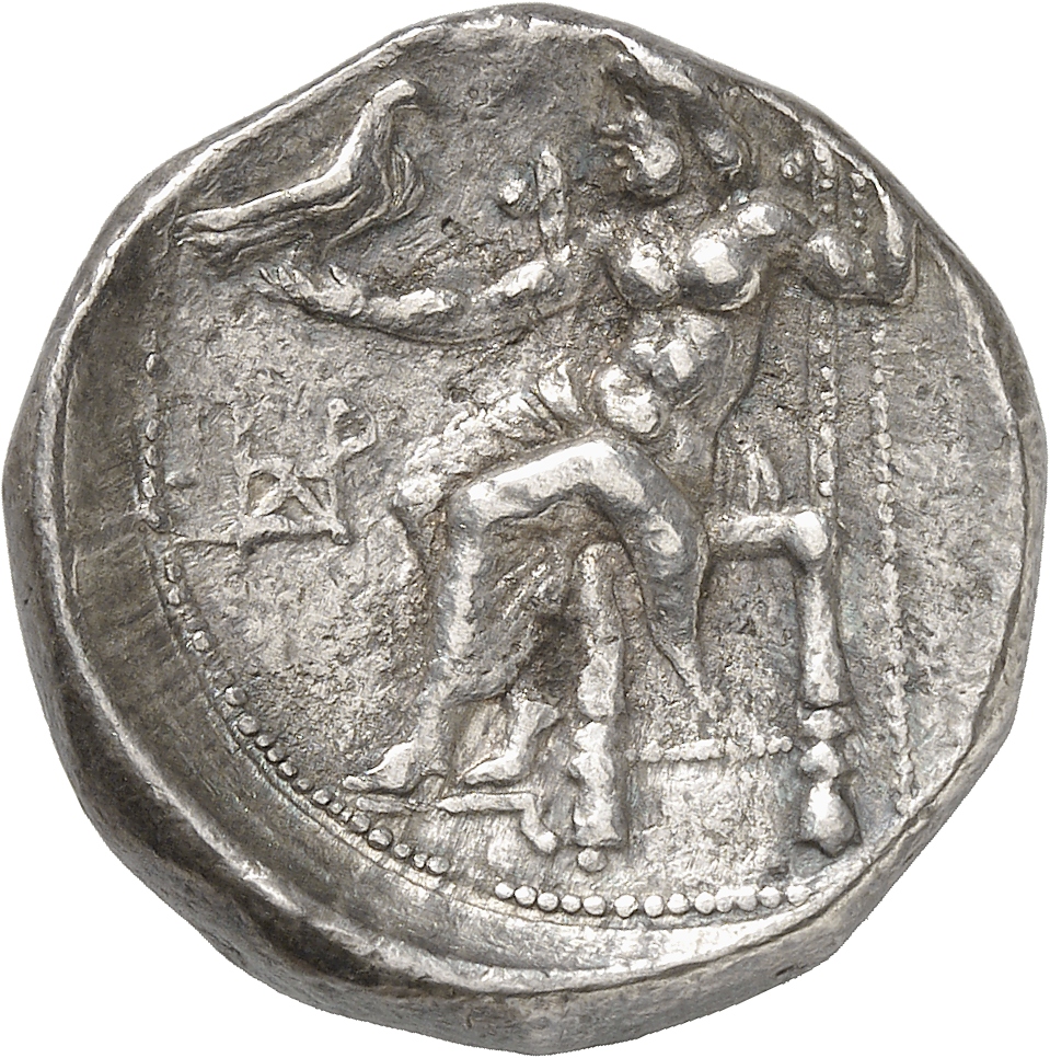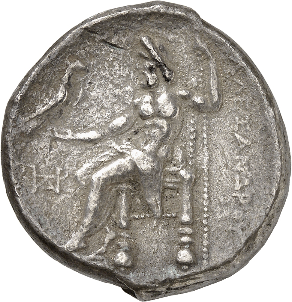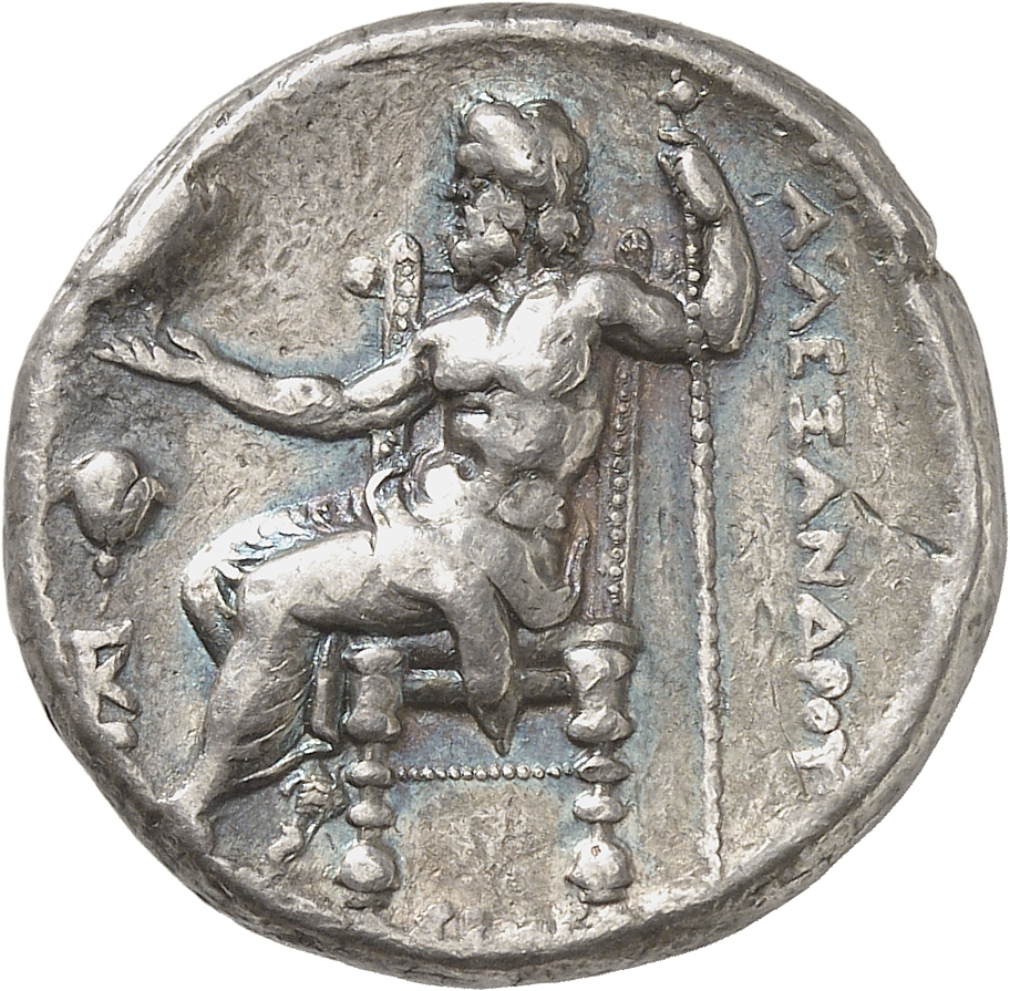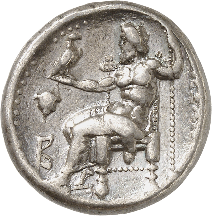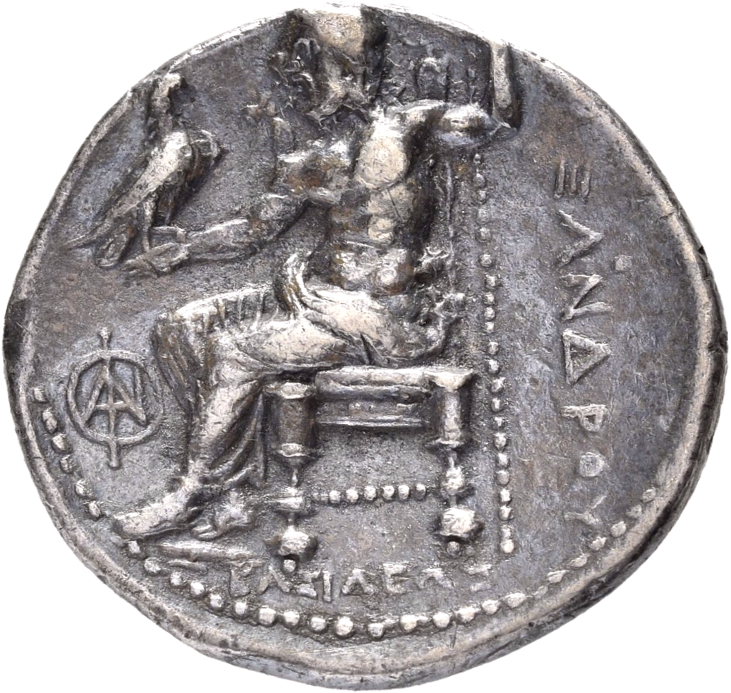 ΑΛΕΞΑΝΔΡΟ: Zeus seated on stool-throne left, eagle on outstretched right hand, sceptre in left hand