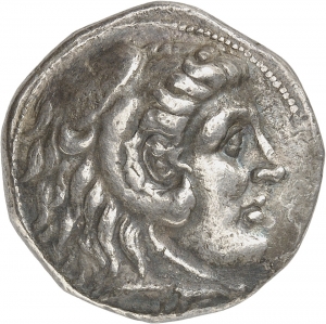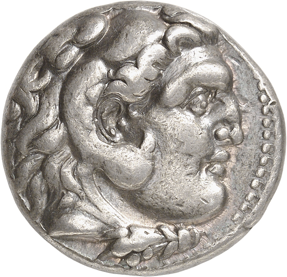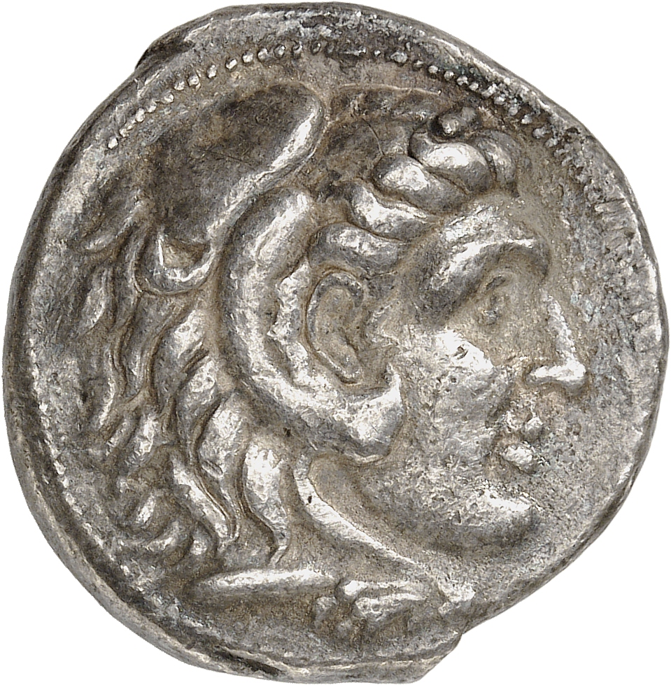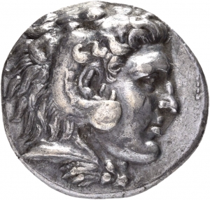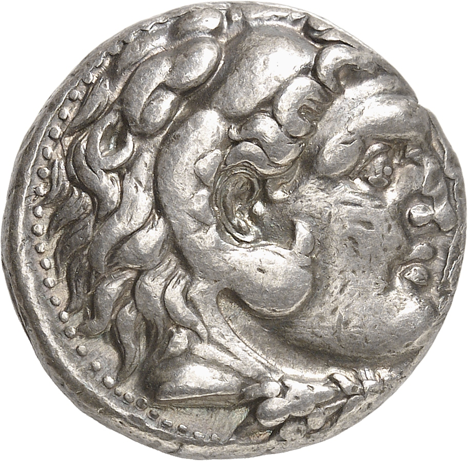 Head of beardless Heracles right wearing lion skin headdress