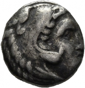 Head of beardless Heracles right wearing lion skin headdress