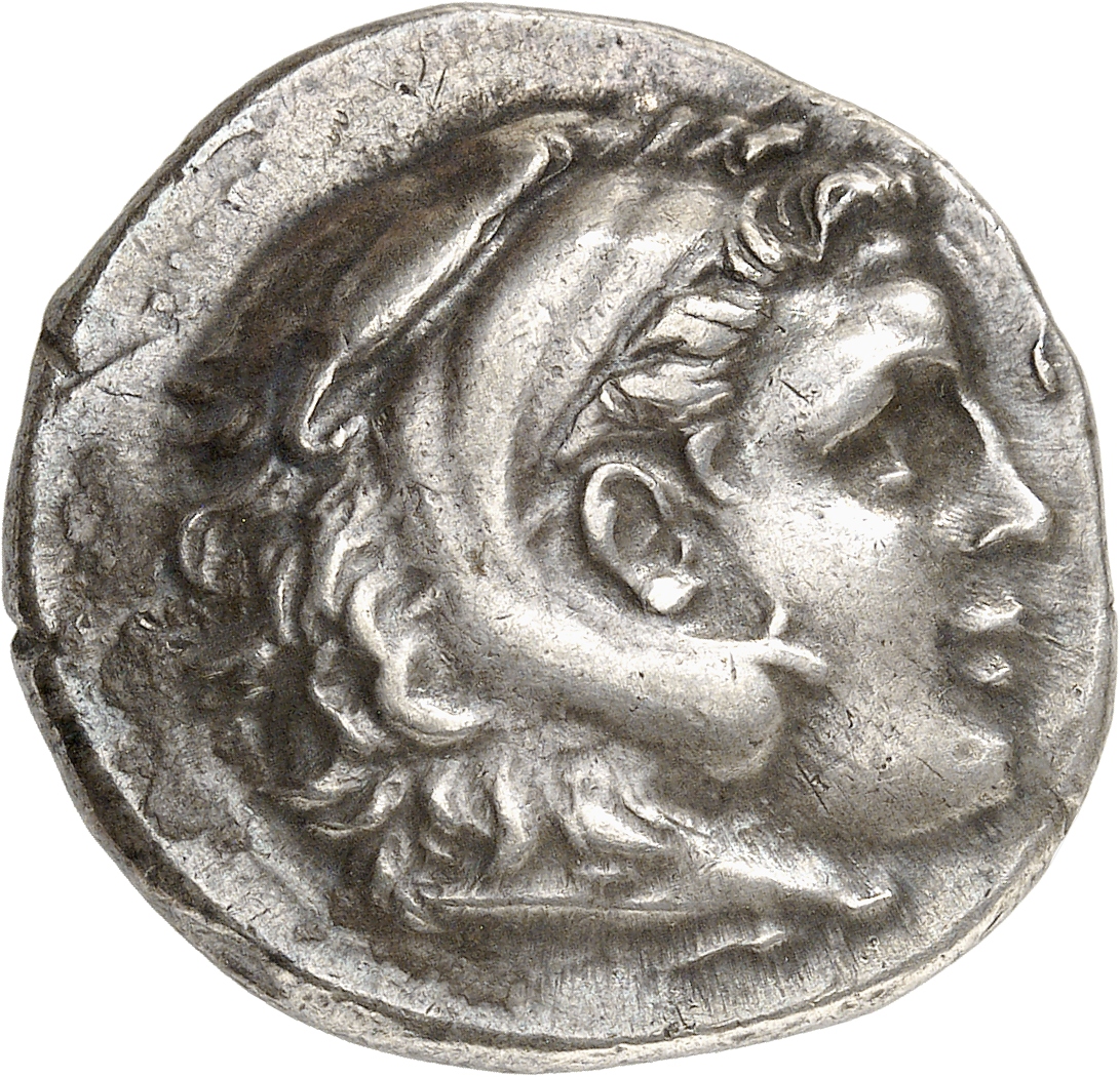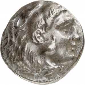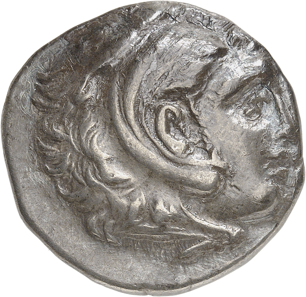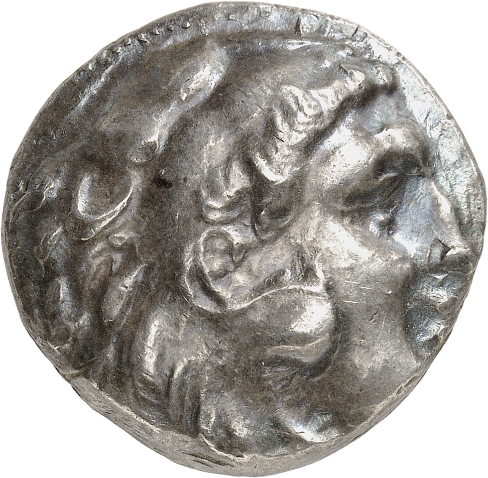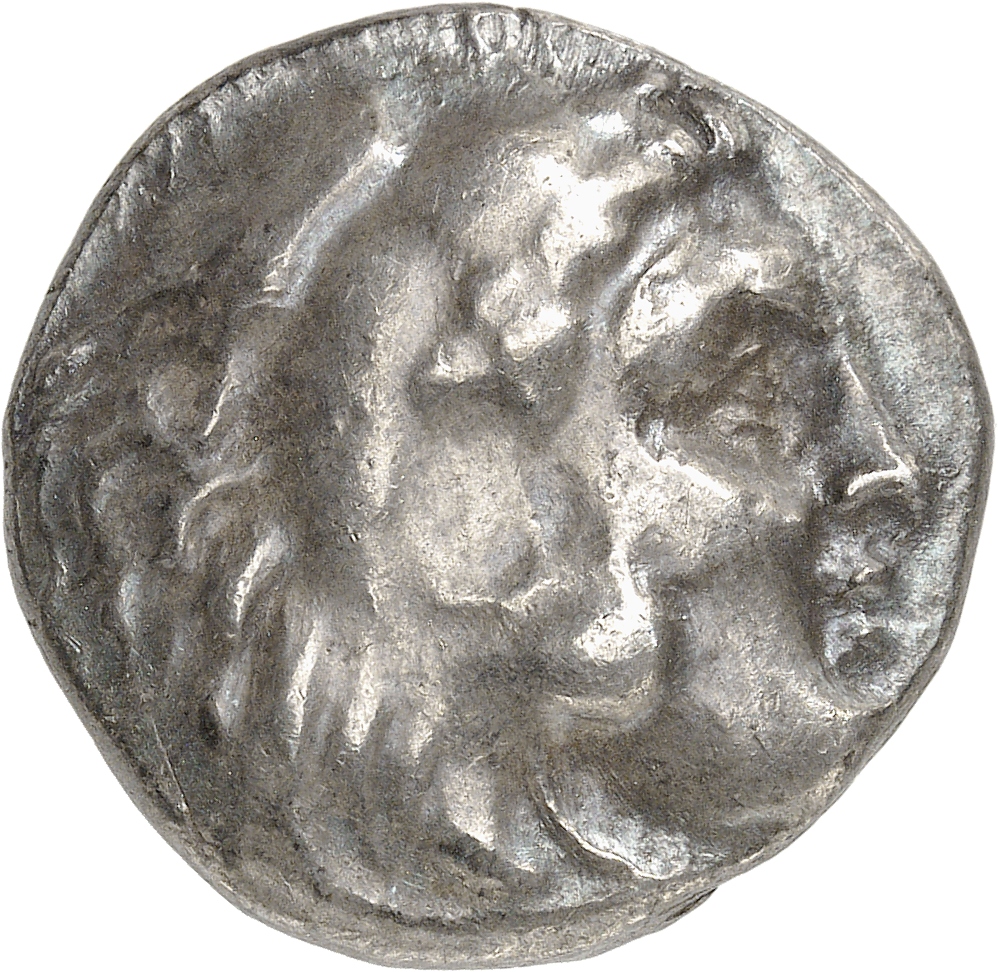 Head of beardless Heracles right wearing lion skin headdress