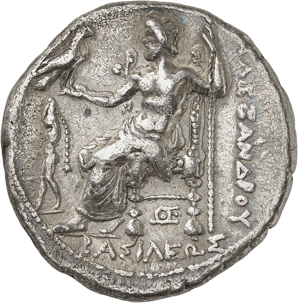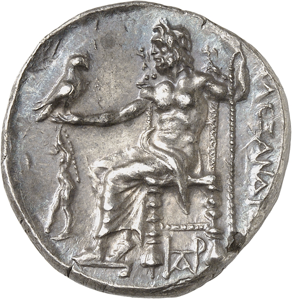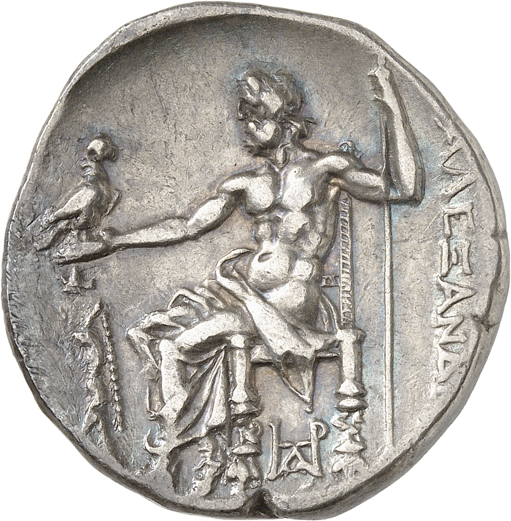 ΒΑΣΙΛΕΩΣ ΑΛΕΞΑΝΔΡΟΥ: Zeus seated on stool-throne left, eagle on outstretched right hand, sceptre in left hand