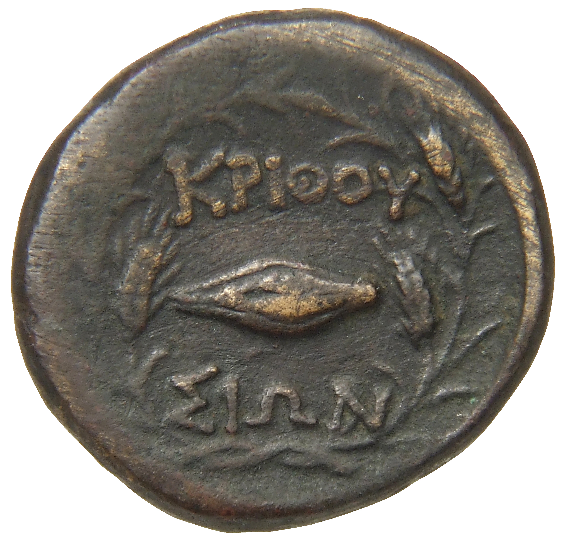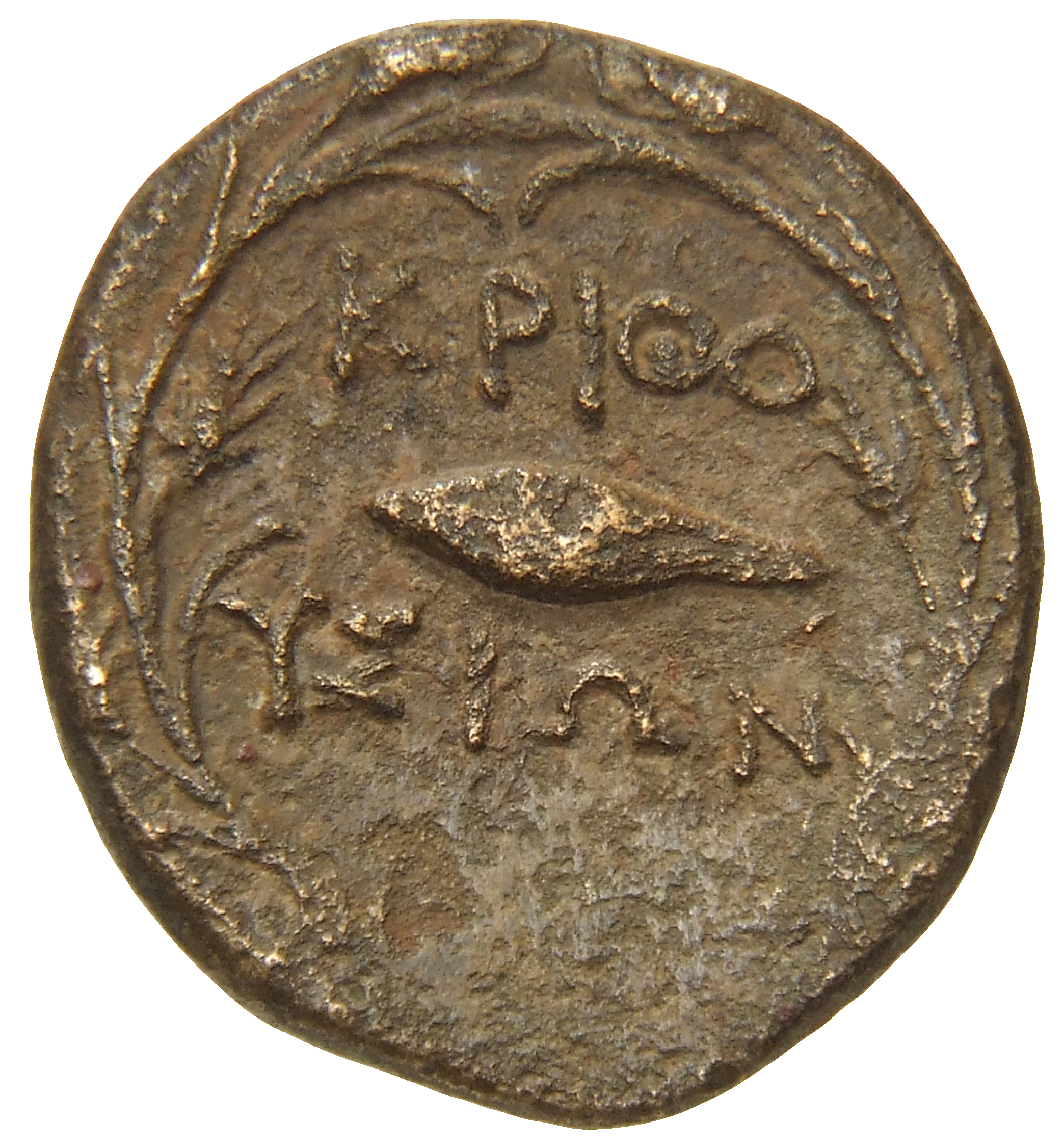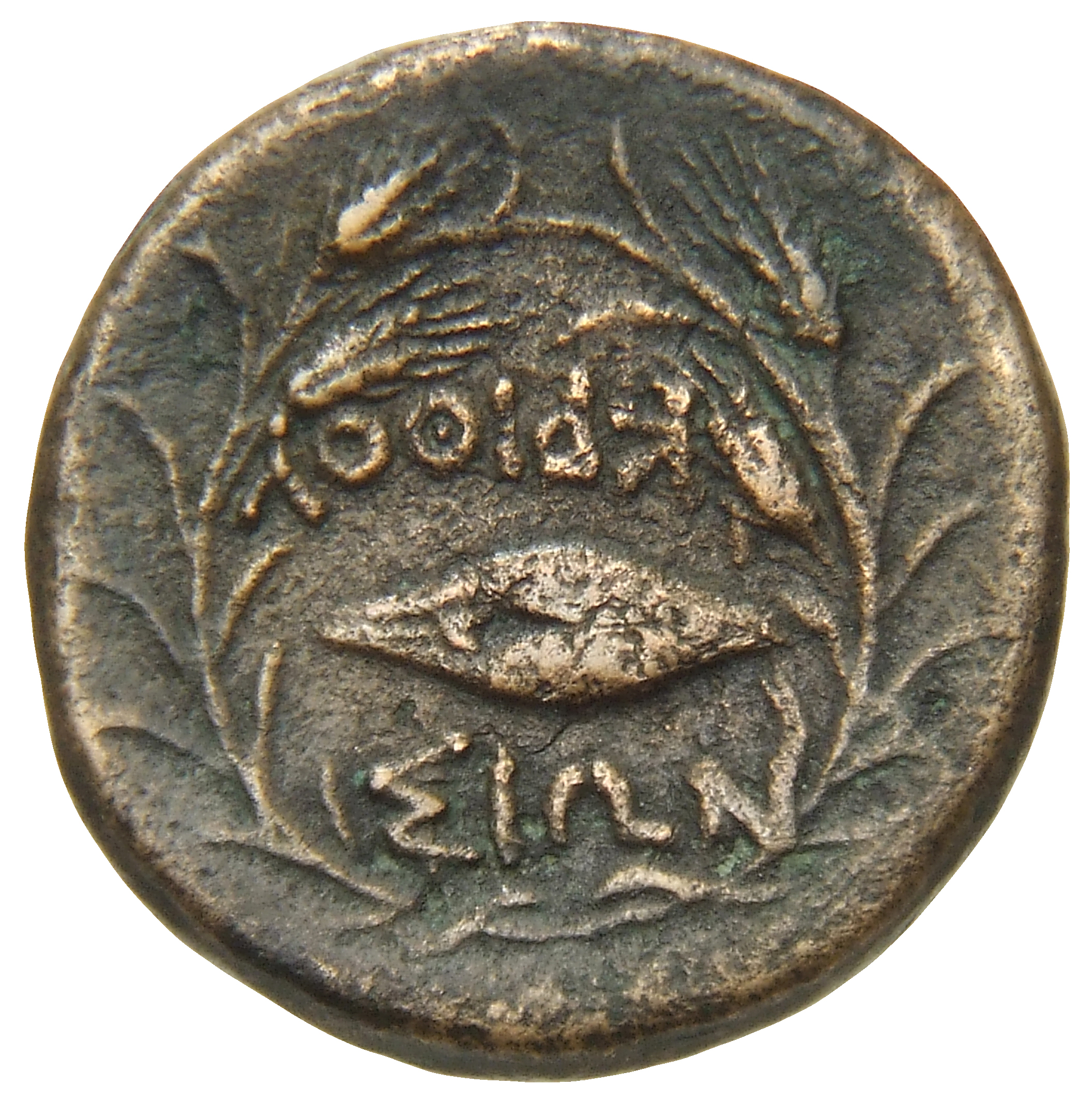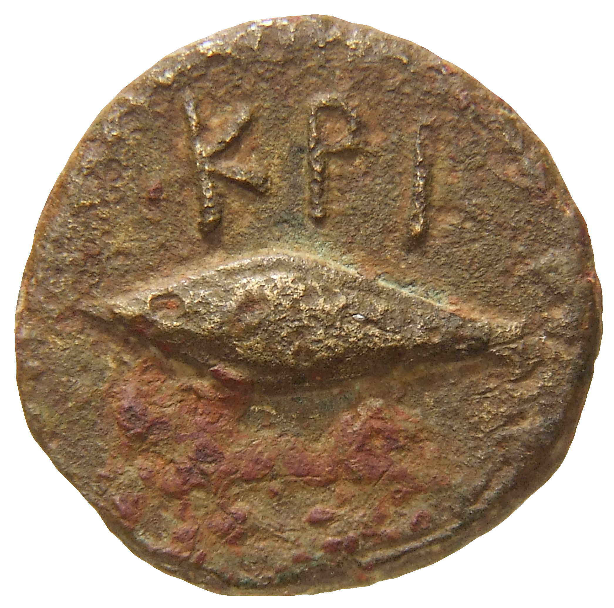 Ram's head, right, within dotted square border; within incuse square.