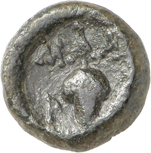 Head of Demeter, left, wearing corn wreath, earring and necklace.