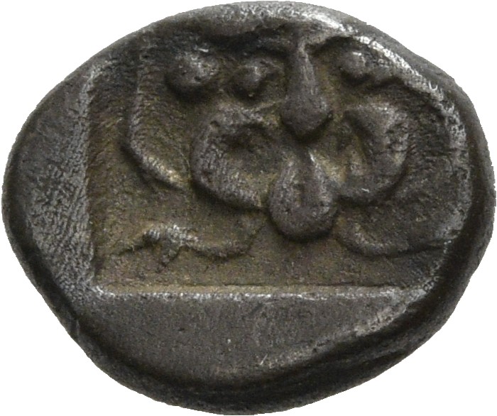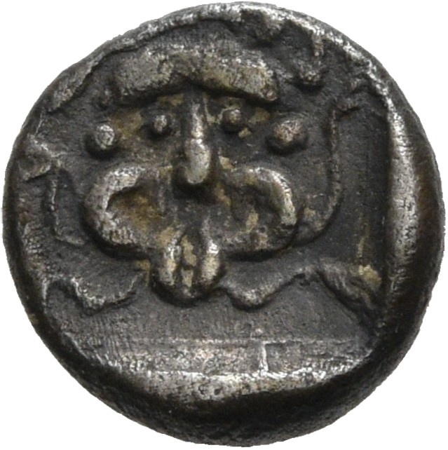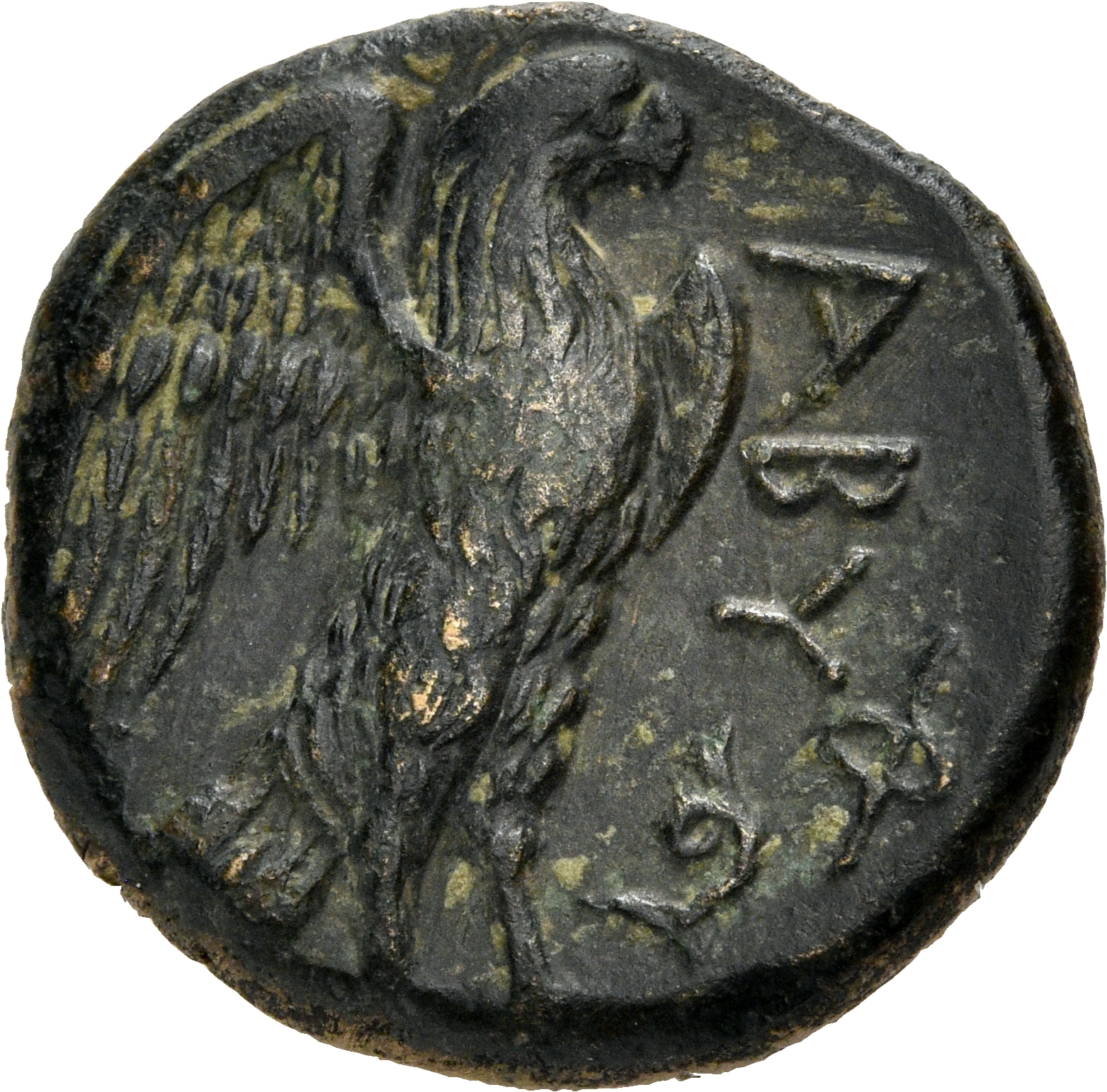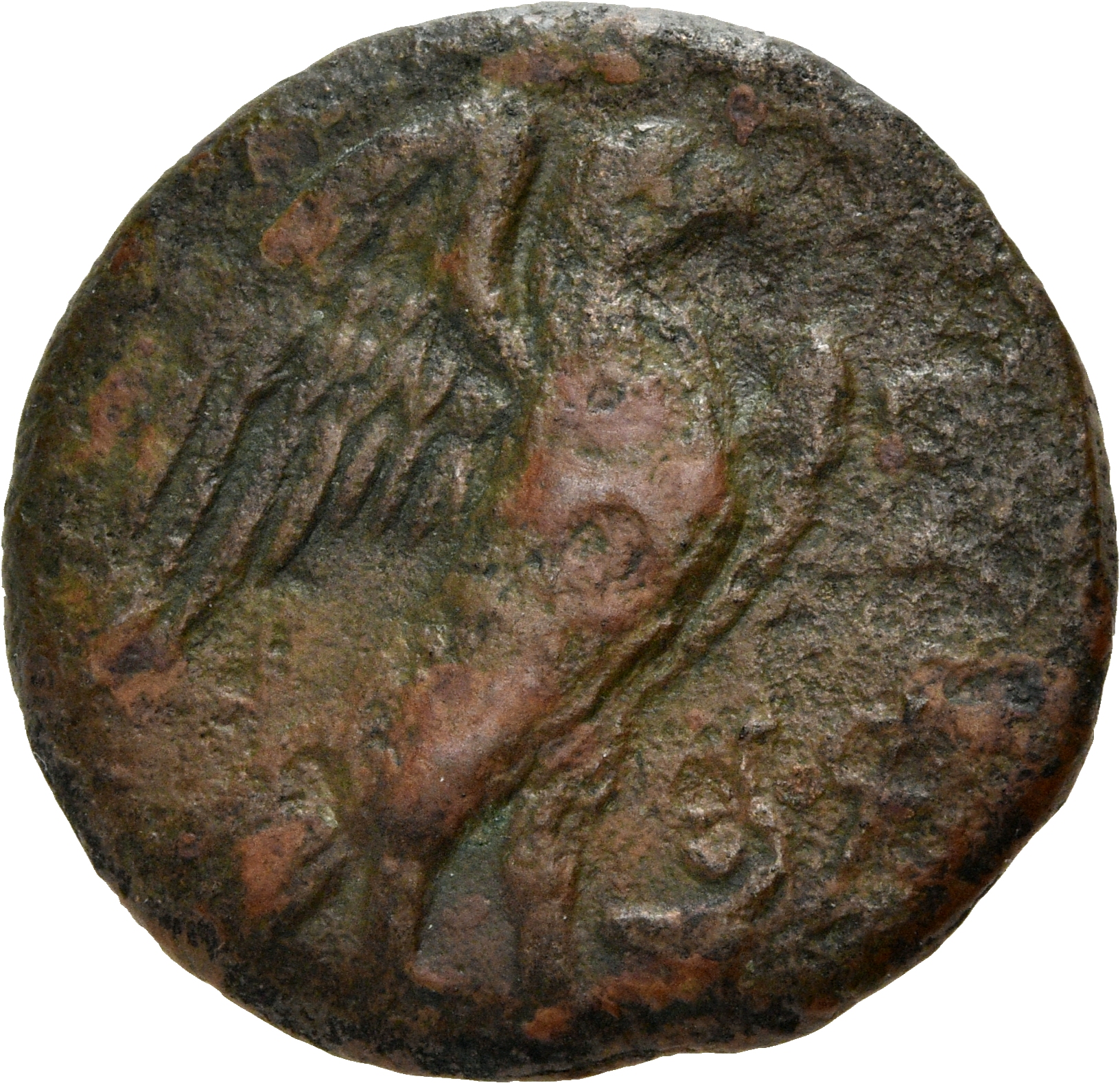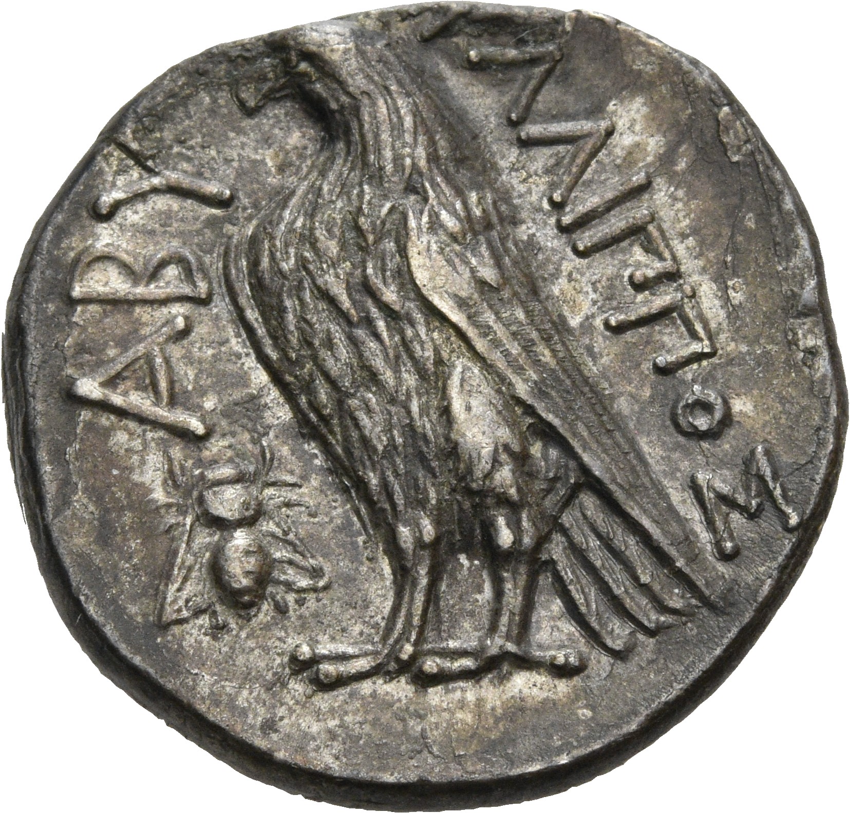 Diademed and draped bust of Artemis, right; bow and quiver over left shoulder.