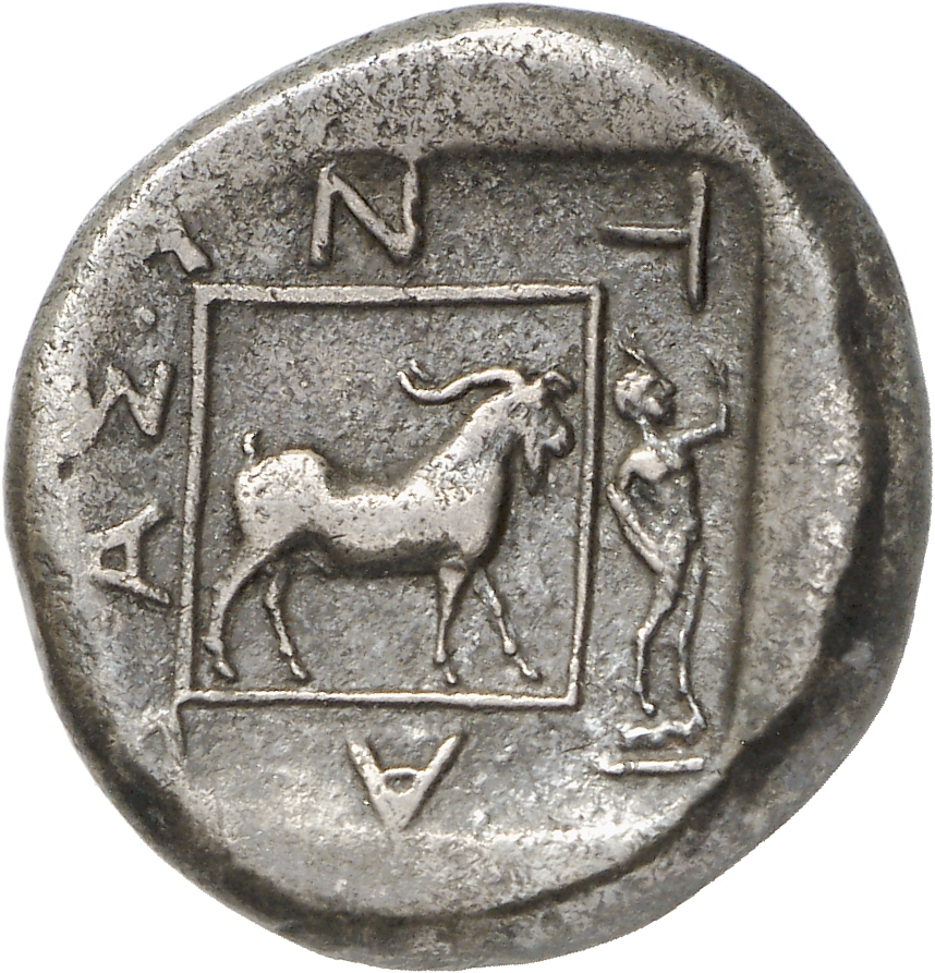 Goat standing right, in incuse square.