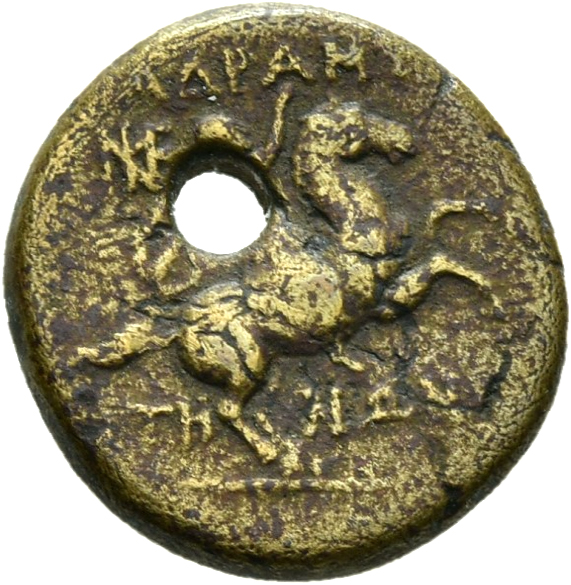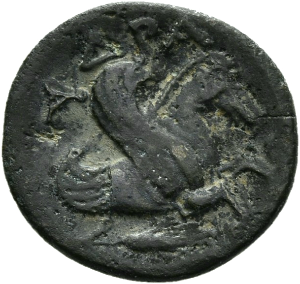 Forepart of winged horse, right.