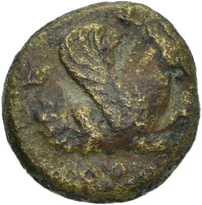 Laureate head of Zeus, left.