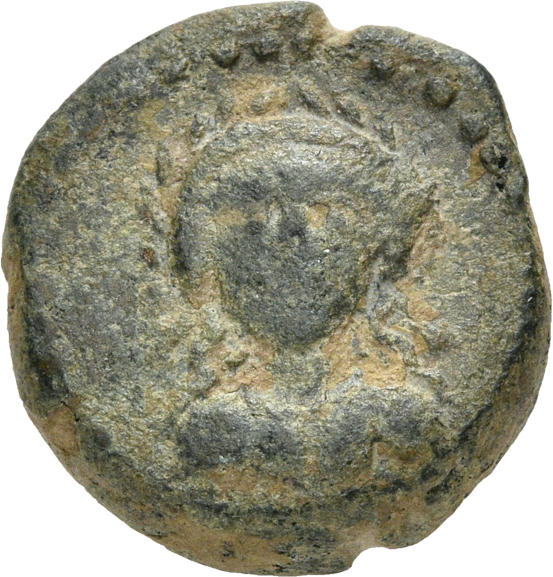 Laurate bust of Apollo, facing.