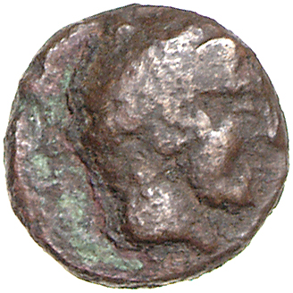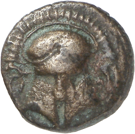 Horseman, wearing chlamys and petasos, on horse galopping right.