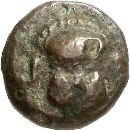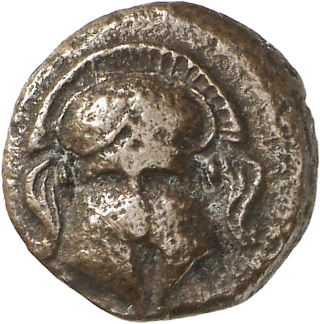 Incuse square of mill-sail pattern, roughened or dotted ground.