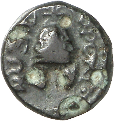 Head of Hermes, right, wearing petasus; caduceus behind.