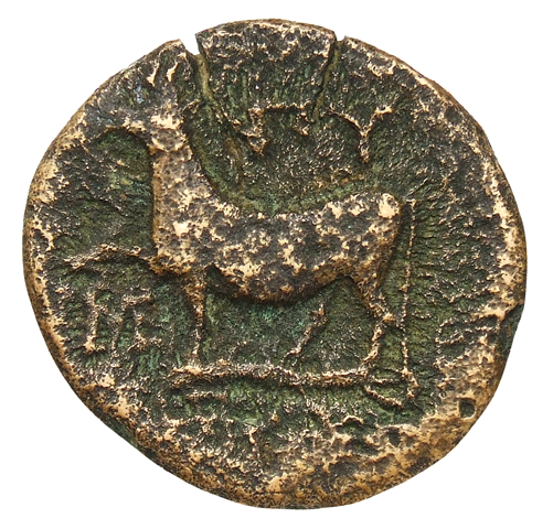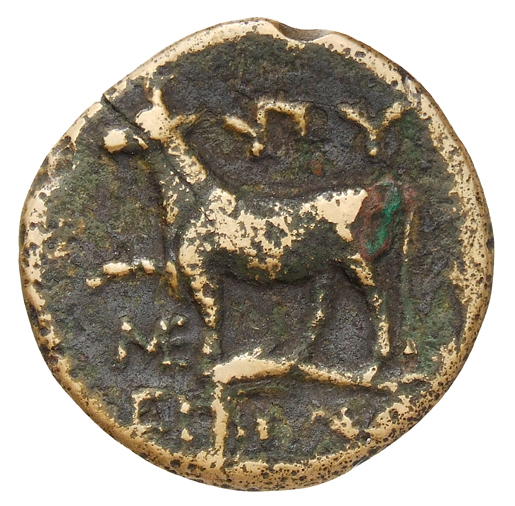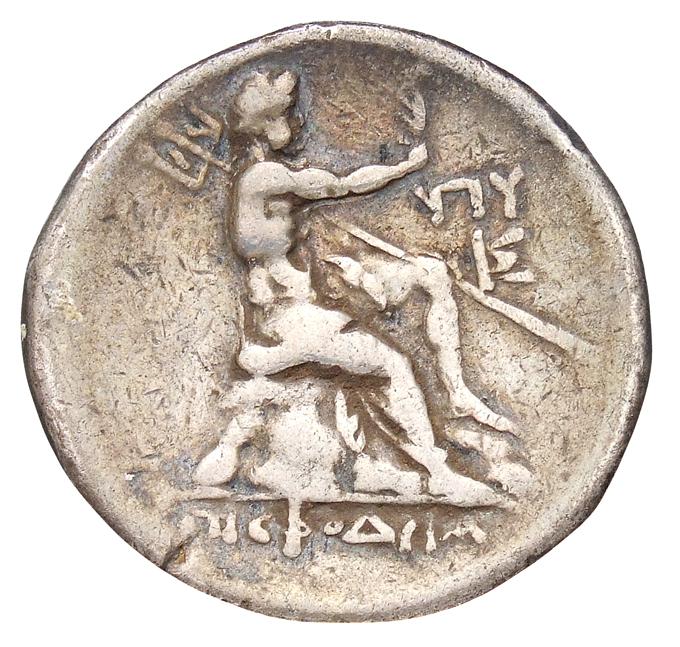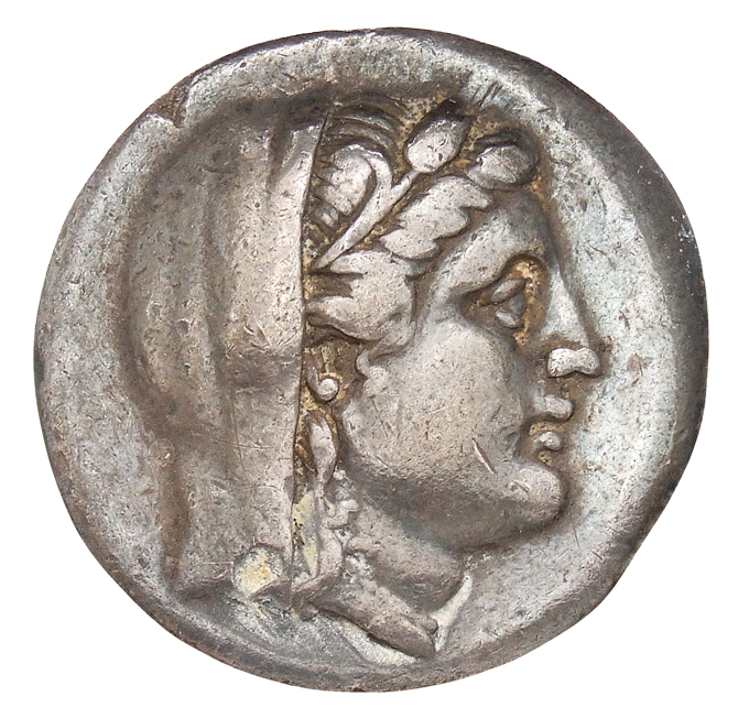 Laureate head of Apollo, right.
